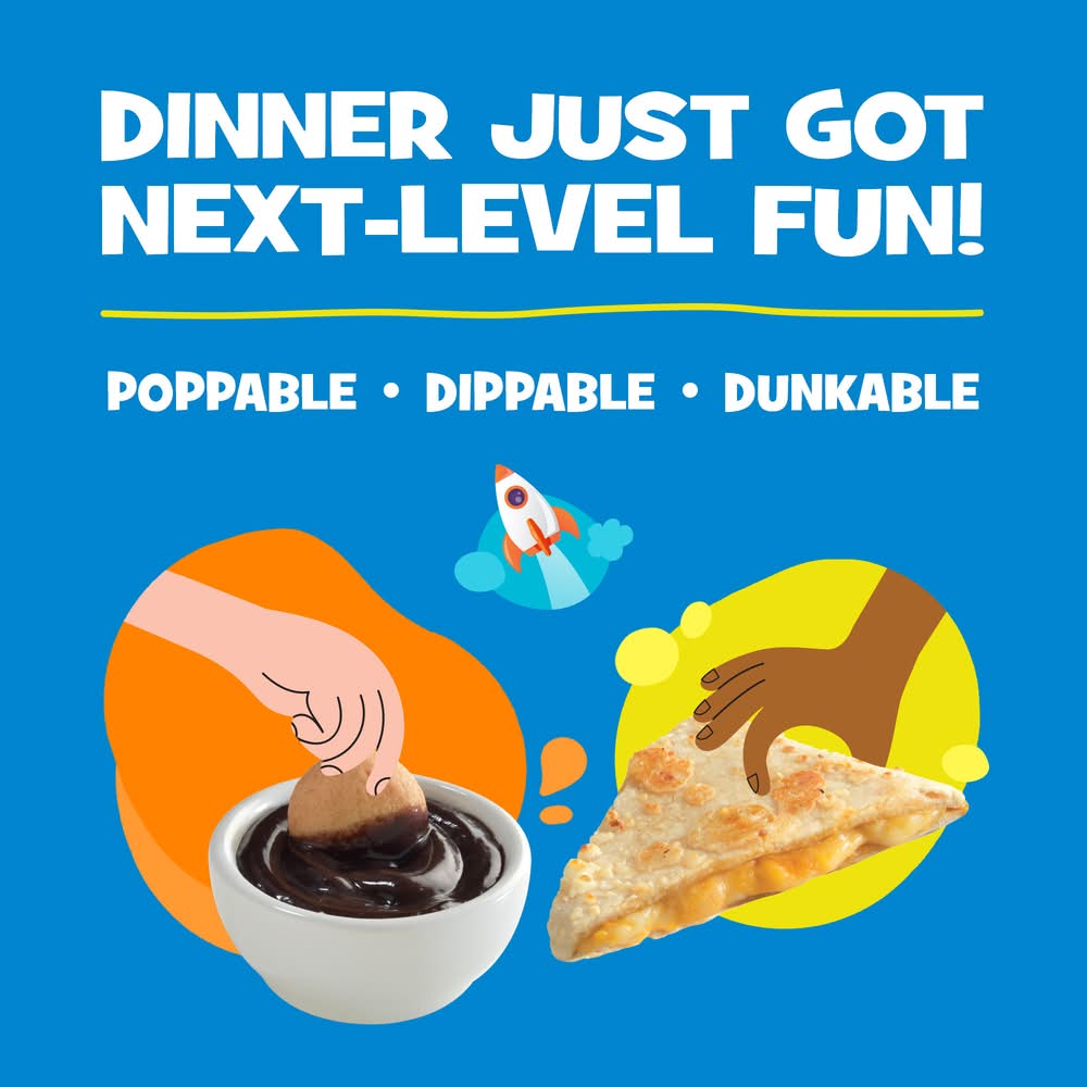 Kid Cuisine Level Up Cheese Quesadilla is a delicious frozen meal that turns dinner into next-level fun with the food they love, nothing they don't! Your kiddos will love having their taste buds blast off while they enjoy a fun, galactic cheese quesadilla with vanilla "moon" cookies & chocolate "black hole" dipping sauce with no utensils required. This microwave meal is easy to prepare in just a few simple steps. Keep your freezer stocked with these delicious cheese quesadillas for exciting weekend lunches or weeknight dinners that your little ones will devour, even the picky eaters. Plus, they come with an Augmented Reality galaxy game you can scan on pack to play while your cosmic meal heats up. Surprise the kids with a dinner that's just for them! Packaging: Reusable