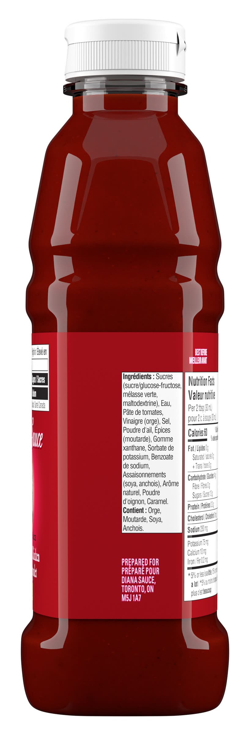 Diana Gourmet Rib & Chicken Barbecue Sauce is made with the finest ingredients and a special blend of herbs and spices. Diana barbecue sauce is slowly simmered one careful batch at a time without any artificial flavours added to ensure that distinctive homemade taste. This BBQ sauce is perfect for ribs & chicken, just marinate or brush on meat. • Flavor: Gourmet rib & chicken • Packaging: Reusable