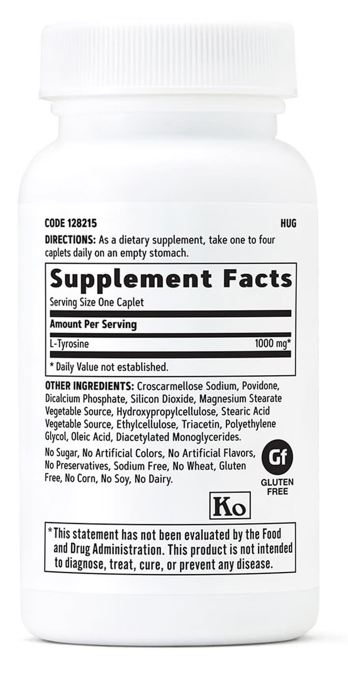 GNC L-Tyrosine 1000 mg: Nervous System Support* Supports normal, healthy nervous system activity.* • 60 vegetarian caplets • 60 servings • Gluten free • Kosher