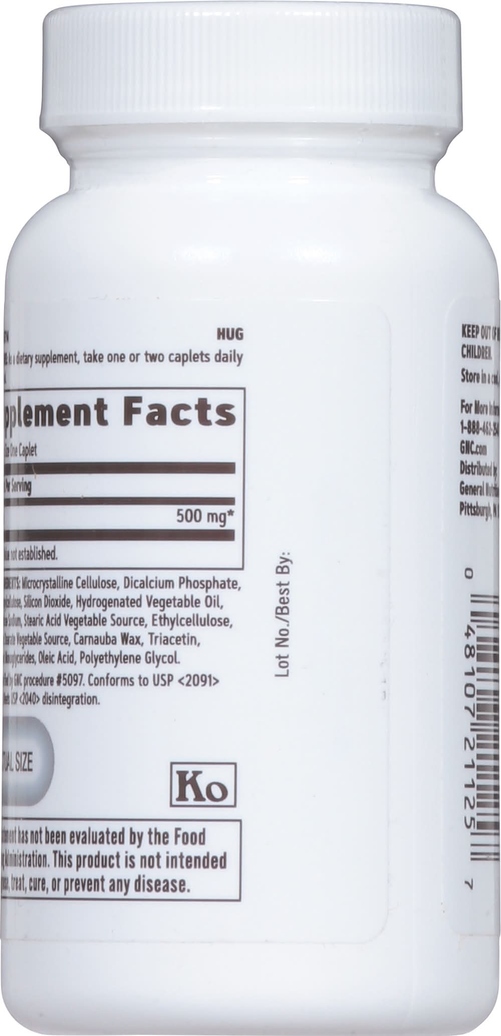 Dietary Supplement. Supports muscle function. 50 servings. Potency verified by GNC procedure 5097, conforms to USP less than 2091greater than for weight, meets USP less than 2040 greater than disintegration. GNC.com. For More Information: 1-888-462-2548; GNC.com. (These statements have not been evaluated by the Food and Drug Administration. This product is not intended to diagnose, treat, cure or prevent any disease.)