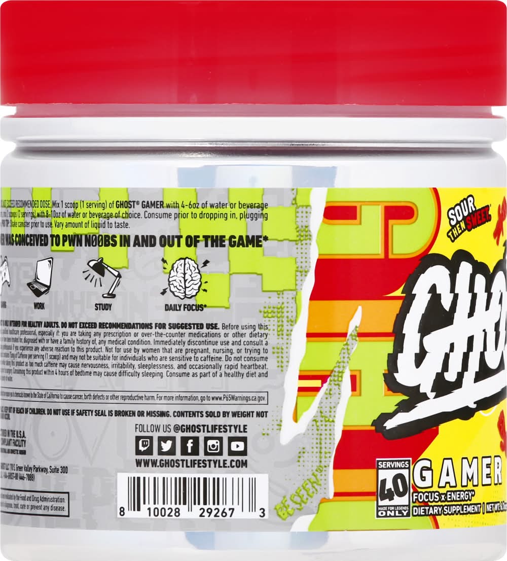 Ghost Gamer Sour Patch Kids Focus X Energy, Redberry (6.7 oz)