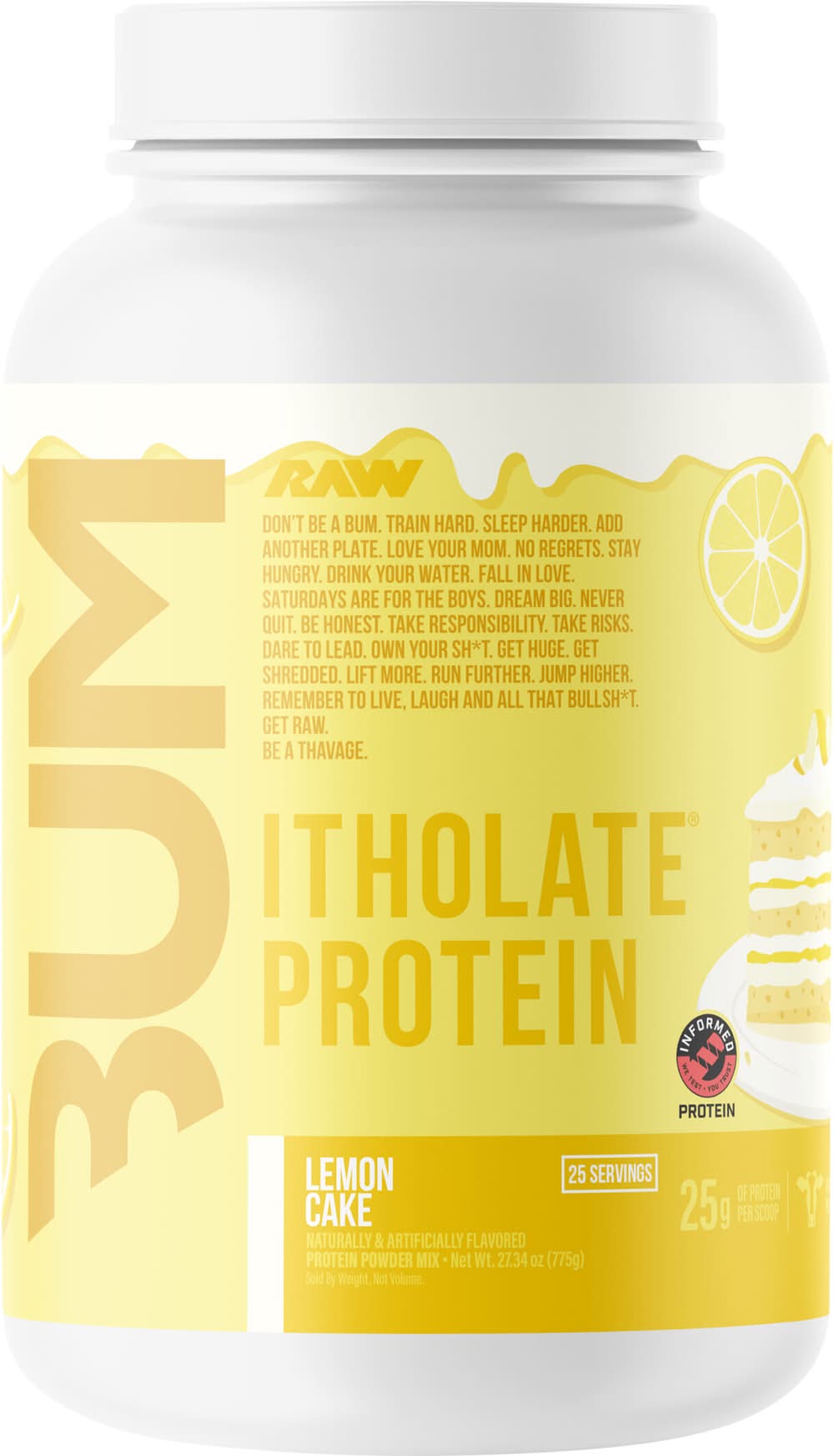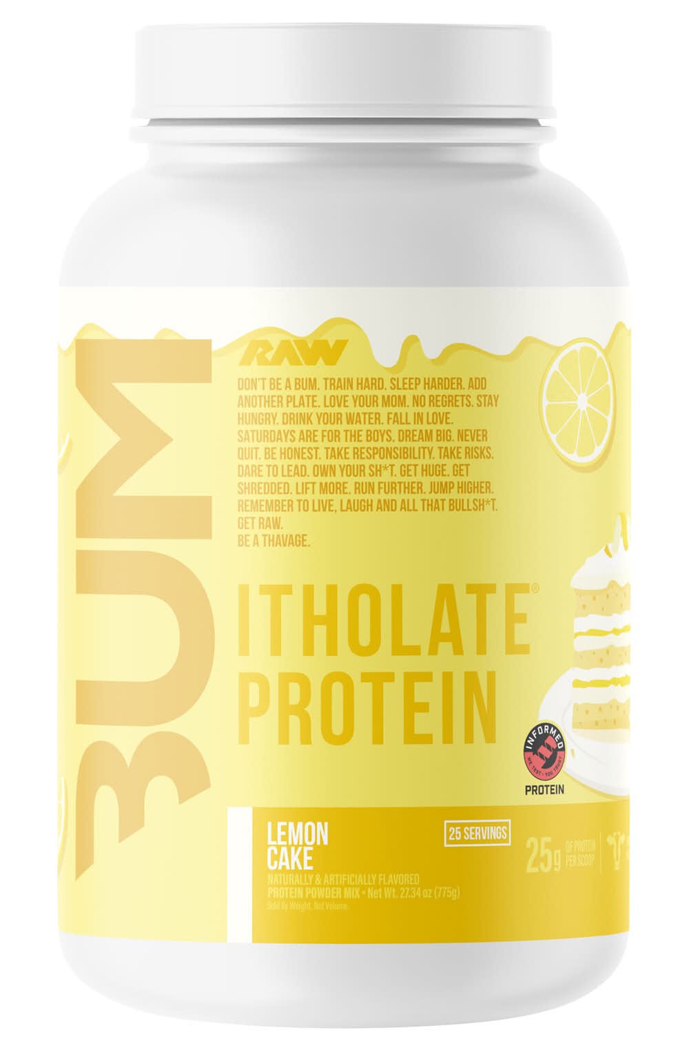 RAW Nutrition Bum Itholate Protein Powder, Lemon Cake (27.34 oz)