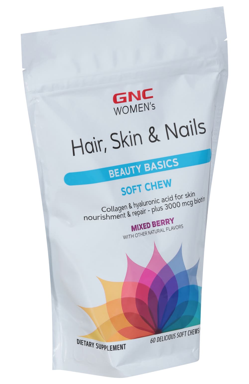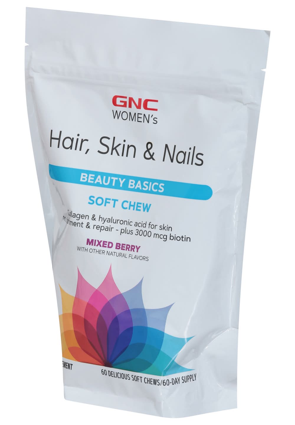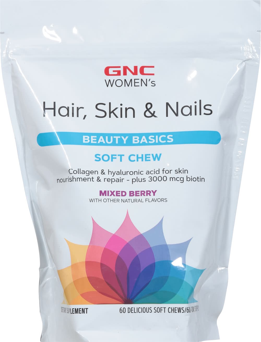 GNC Womens Hair Skin & Nails Women's Beauty Basics, Mixed Berry & Soft Chew (60 ct)