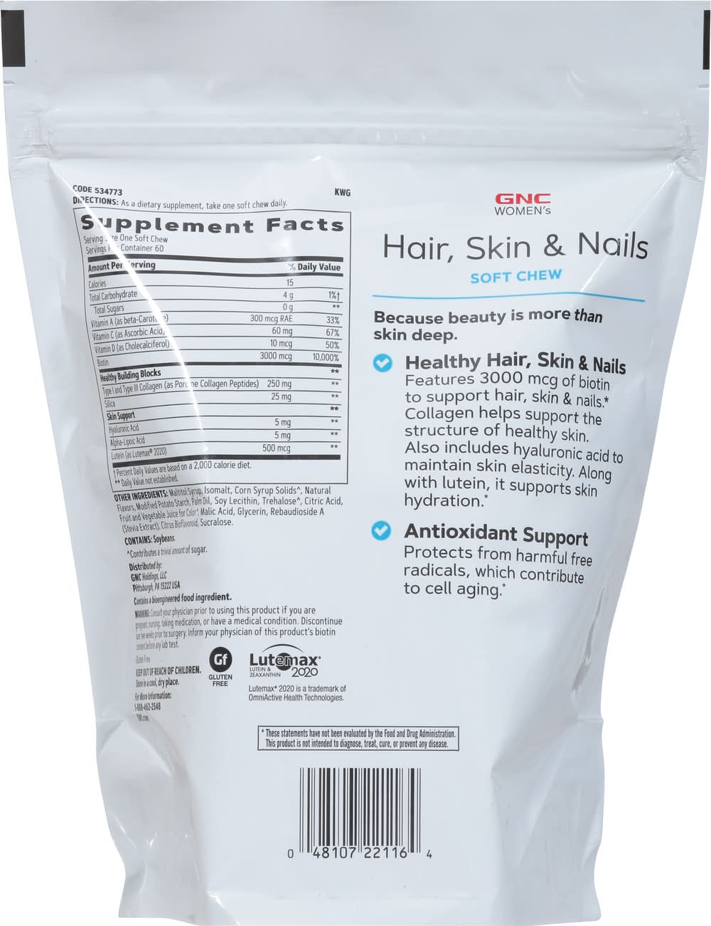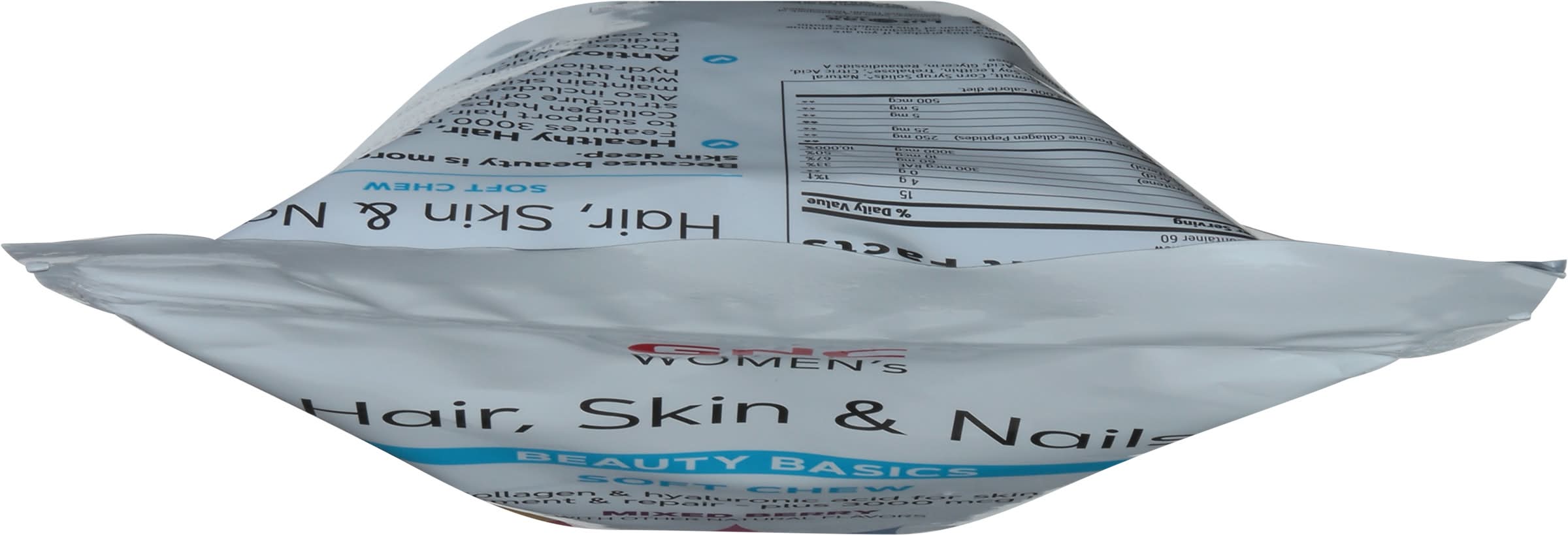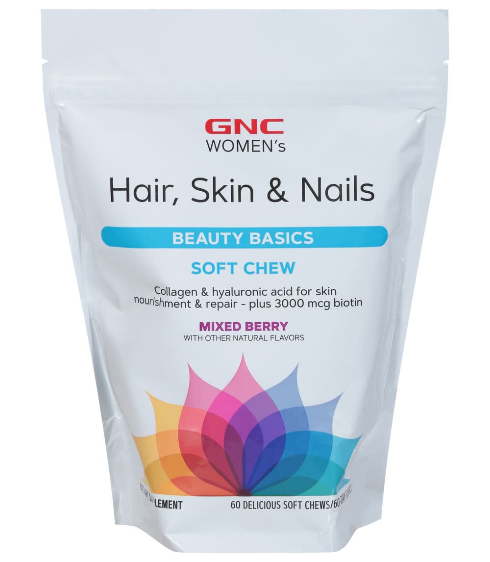 GNC Womens Hair Skin & Nails Women's Beauty Basics, Mixed Berry & Soft Chew (60 ct)