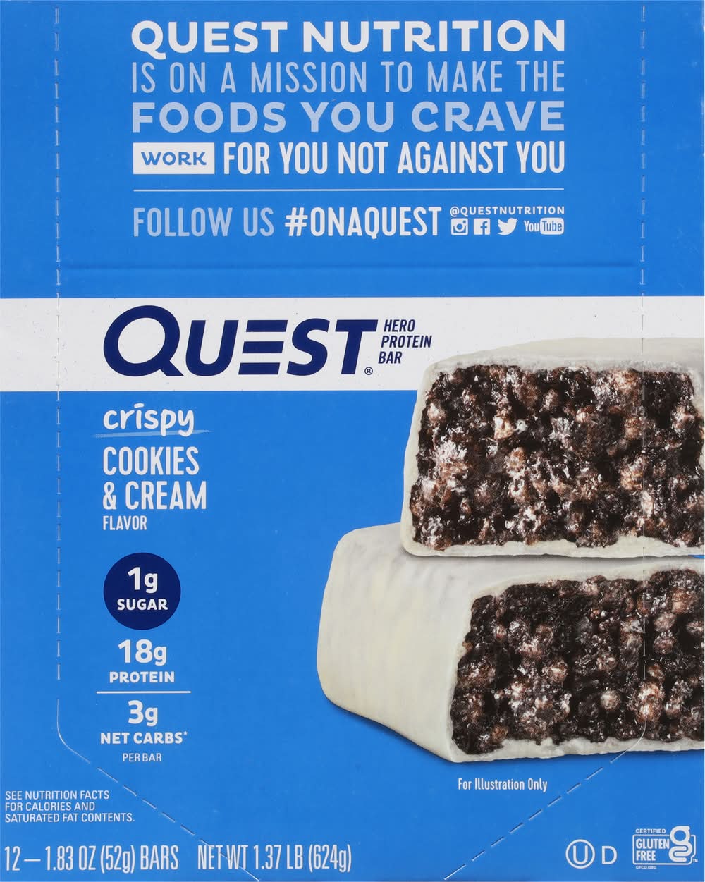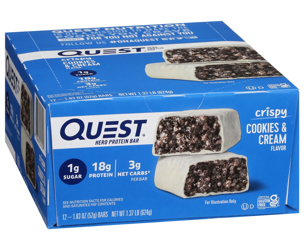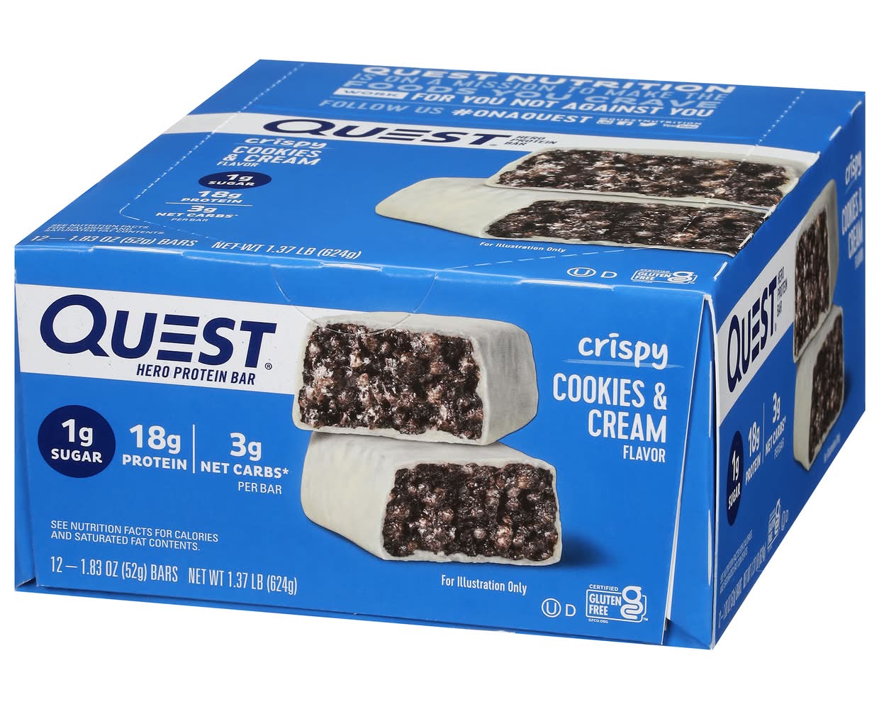 Quest Hero Protein Bar, Crispy Cookies & Cream (1.37 lbs, 12 ct)