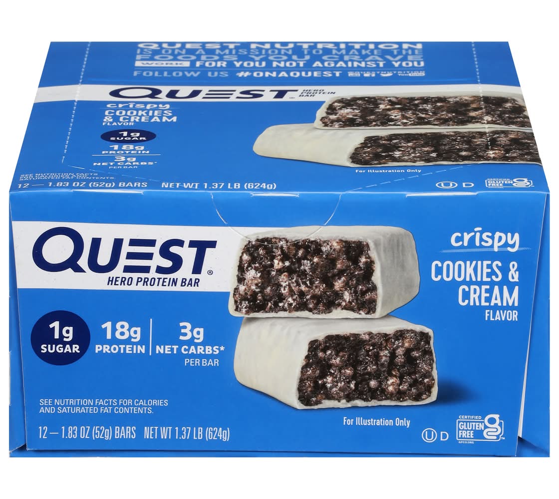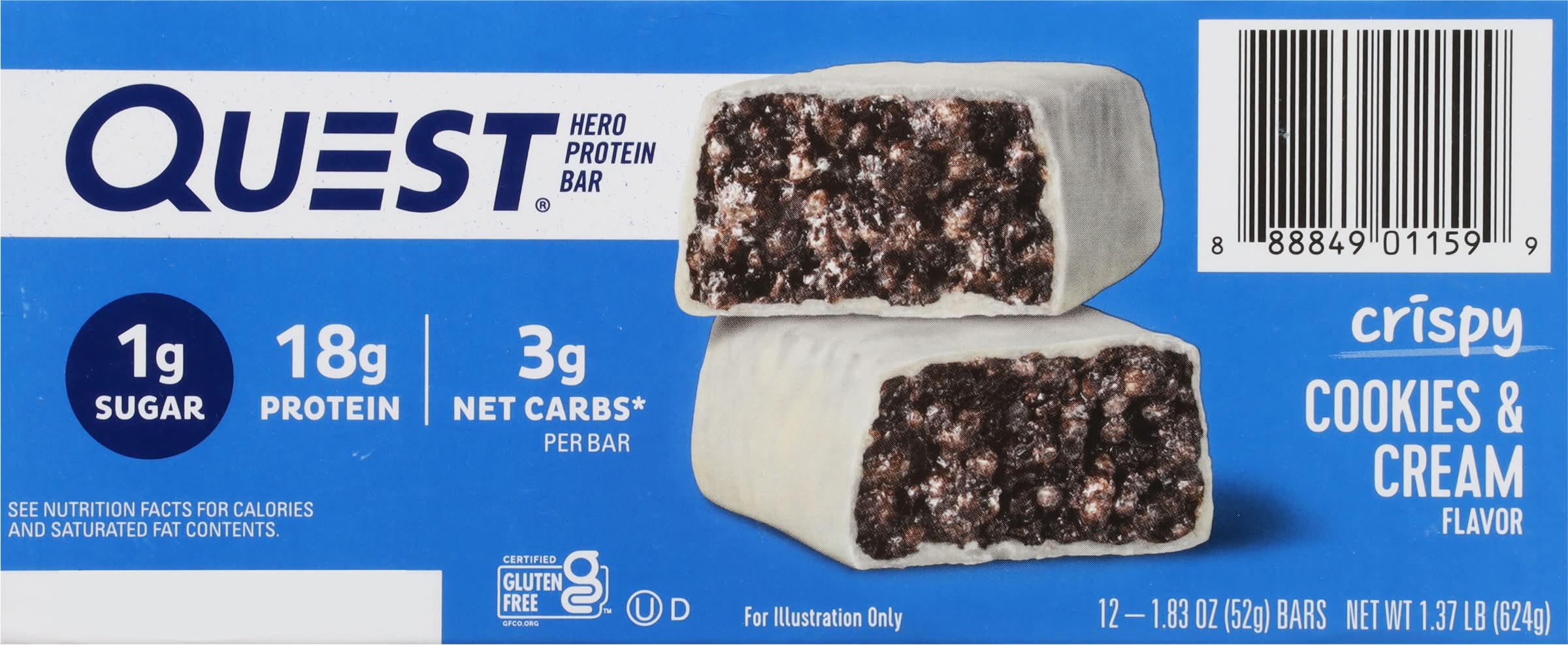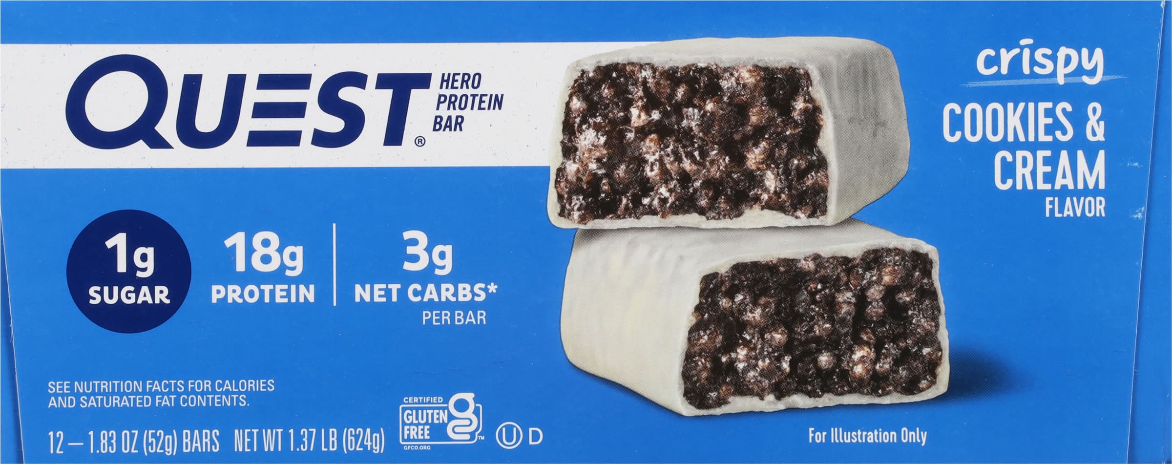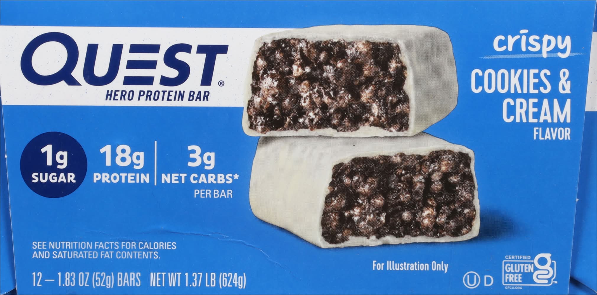 Quest Hero Protein Bar, Crispy Cookies & Cream (1.37 lbs, 12 ct)