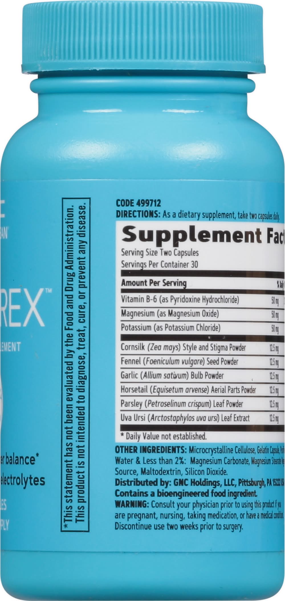 Waterex, Capsules • GNC Holdings, Llc, Pittsburgh, PA, 15222 • Packaging: Reusable