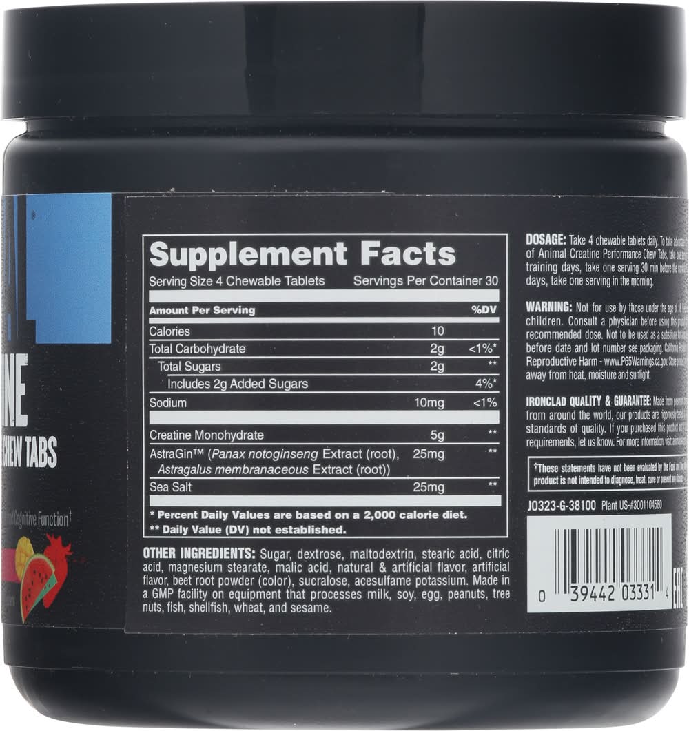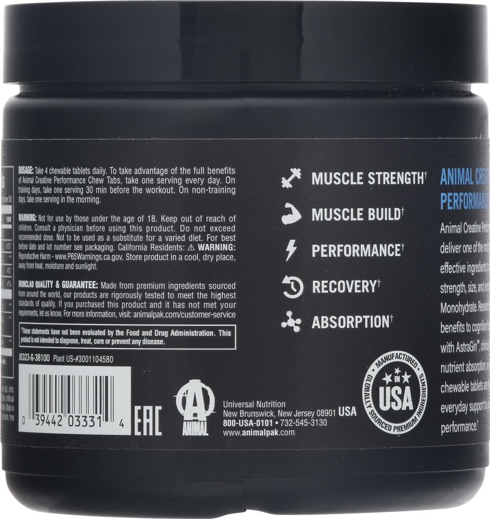 Animal Creatine Performance Chew Tablets, Fruit Punch (120 ct)
