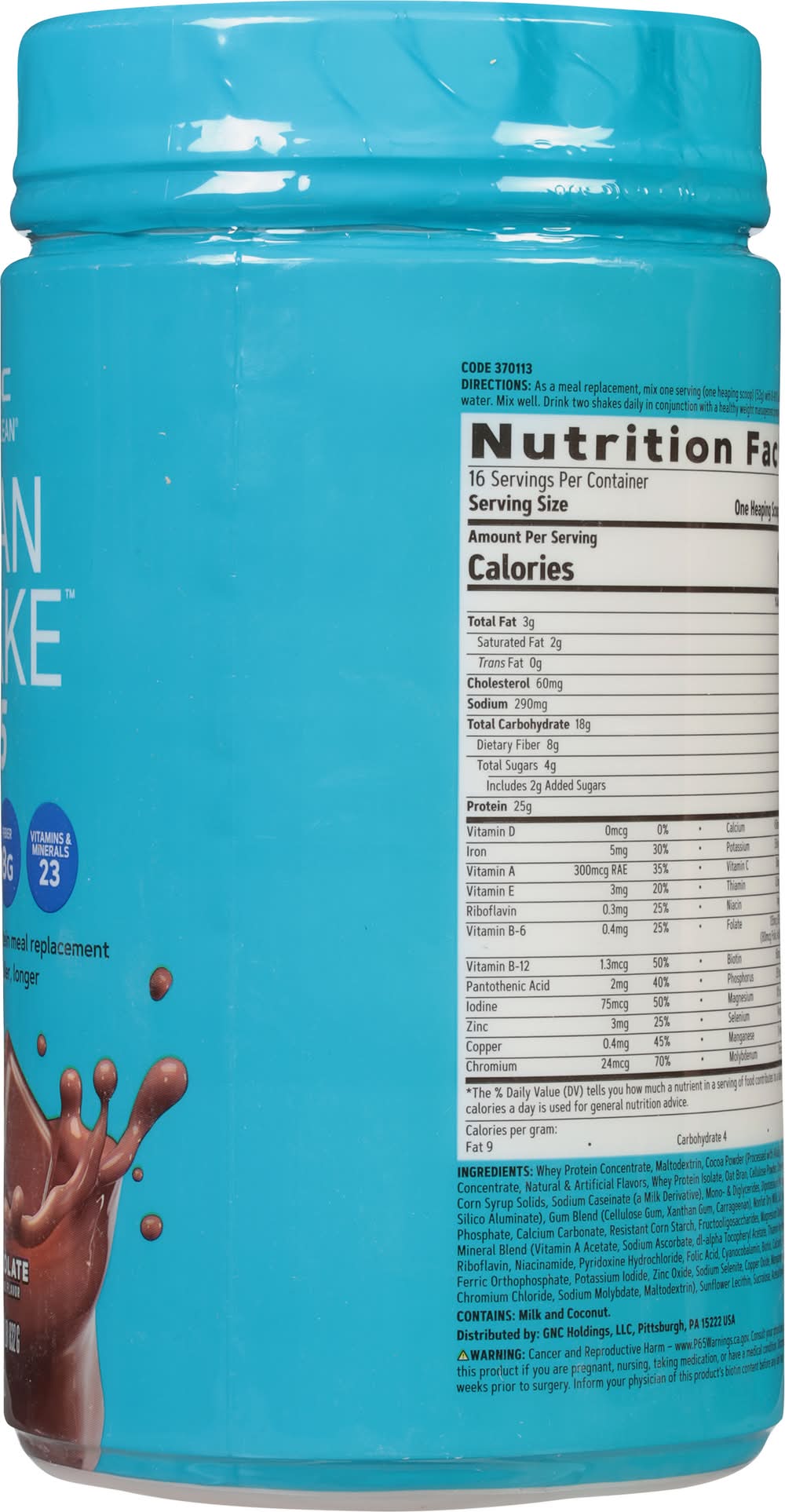 Ingredients: Whey Protein Concentrate, Maltodextrin, Cocoa Powder (Processed with Alkali), Milk Protein Concentrate, Natural & Artificial Flavors, Whey Protein Isolate, Oat Bran, Cellulose Powder, Creamer (Coconut Oil, Corn Syrup Solids, Sodium Caseinate (a Milk Derivative), Mono- & Diglycerides, Dipotassium Phosphate, & Sodium Silico Aluminate), Gum Blend (Cellulose Gum, Xanthan Gum, Carrageenan), Nonfat Dry Milk, Salt, Tricalcium Phosphate, Calcium Carbonate, Resistant Corn Starch, Fructooligosaccharides, Magnesium Oxide, Vitamin & Mineral Blend (Vitamin A Acetate, Sodium Ascorbate, DL-Alpha Tocopheryl Acetate, Thiamin Hydrochloride, Riboflavin, Niacinamide, Pyridoxine Hydrochloride, Folic Acid, Cyanocobalamin, Biotin, Calcium D-Pantothenate, Ferric Orthophosphate, Potassium Iodide, Zinc Oxide, Sodium Selenite, Copper Oxide, Manganese Sulfate, Chromium Chloride, Sodium Molybdate, Maltodextrin), Sunflower Lecithin, Sucralose, Acesulfame Potassium Contains: Milk, Tree Nuts, Coconuts, Oat, Corn