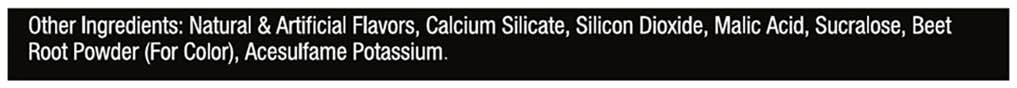 Ingredients: Other Ingredients: Natural & Artificial Flavors, Calcium Silicate, Silicon Dioxide, Malic Acid, Sucralose, Beet Root Powder (for Color), Acesulfame Potassium