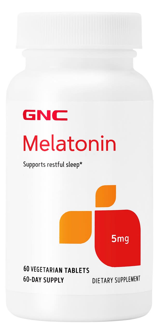Gnc melatonin 5 mg: for a restful night's sleep. The supplement that offers a natural way to support restful sleep. Your body naturally produces this hormone in your pineal gland and creates less of this sleep-influencing substance during the day and more at night. Melatonin 5 mg for sleep may be beneficial if you have a sleep schedule that frequently changes. •Tablets feature ingredients acceptable for vegetarian use.