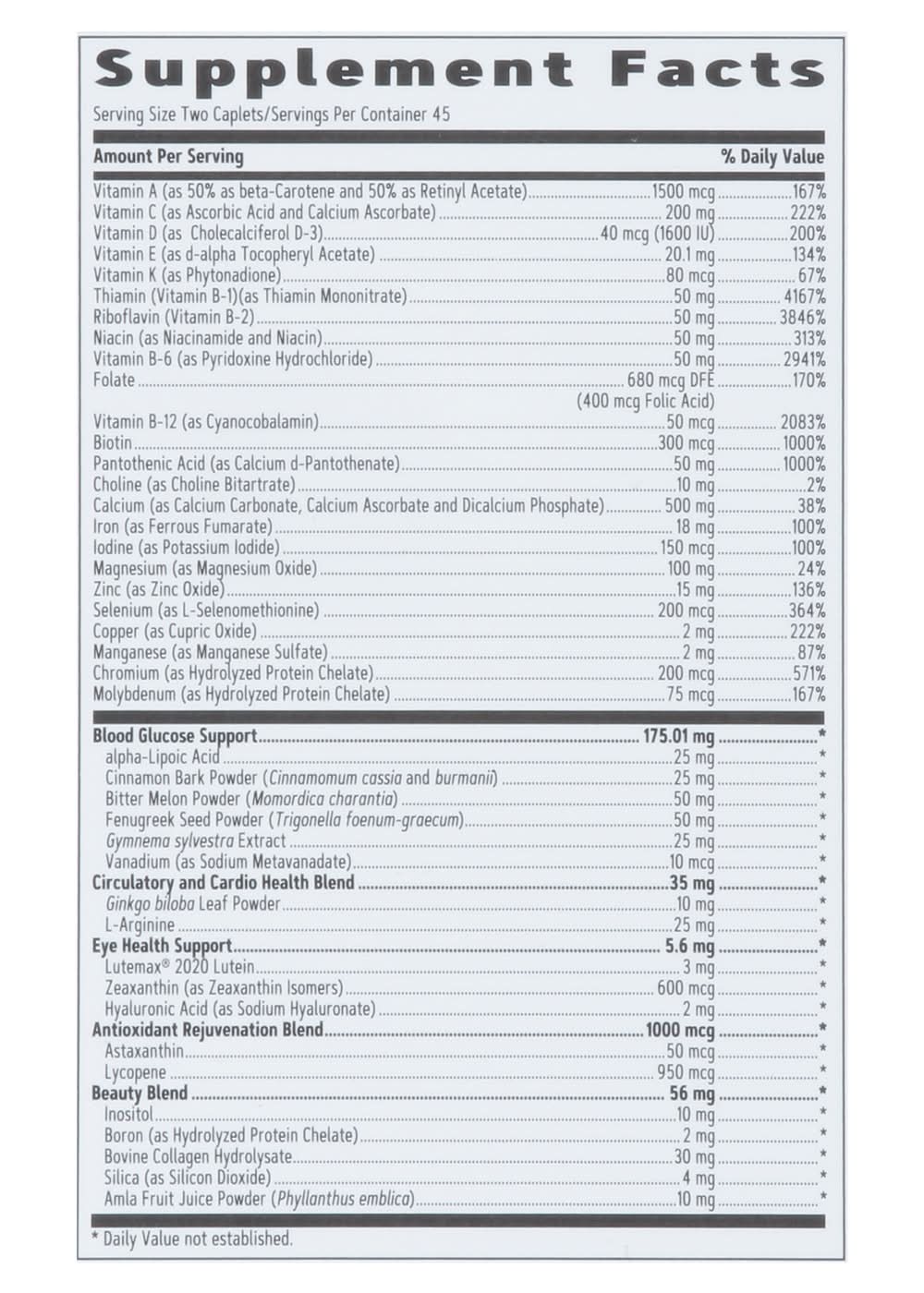 Multivitamin, Diabetic Support, Caplets Packaging: Reusable