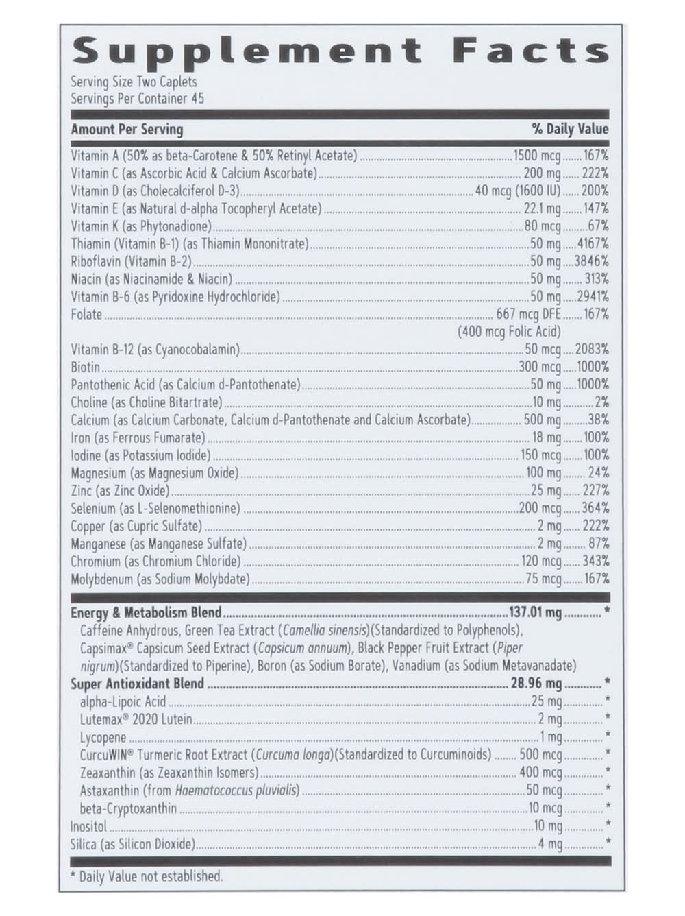Multivitamin, Energy & Metabolism, Caplets • Size: 1 • General Nutrition, Pittsburgh, PA, 15222 • Packaging: Reusable