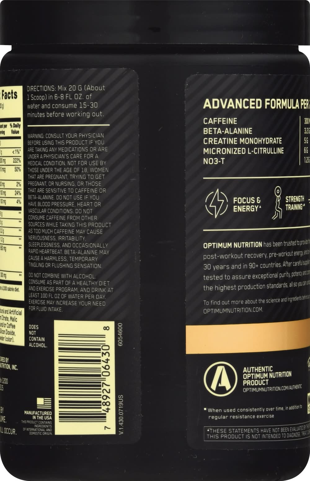 Optimum Nutrition Gold Standard Advanced Pre-Workout Powder, Strawberry-Mango-Daiquiri (14.1 oz)