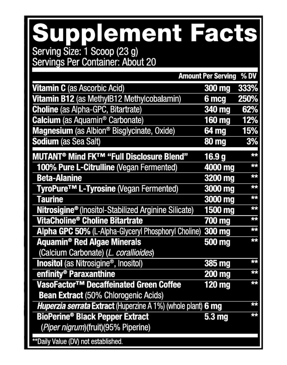 MUTANT Epic Nootropic Preworkout Brain Supplement For Mental Focus, Blue Raspberry (16.2 oz, 20 ct)
