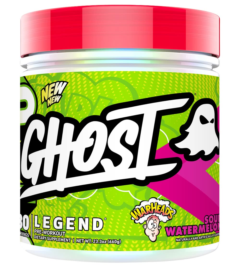 GHOST LEGEND V4 Pre-Workout: Warheads Sour Watermelon GHOST LEGEND Was Conceived To Power Legendry In All Of Its Forms Feel Like A Legend When You Need It Most. GHOST LEGEND pre-workout combines a standout energy and focus formula with premium pump ingredients to get you feeling like a legend whenever you need it most*. Train With Legendary Energy*. GHOST fine-tuned their original pre-workout formula with even more support for energy and endurance: GHOST LEGEND® delivers 300mg of high-quality natural caffeine. Power Improved Pumps*†. Pumps turn struggle into satisfaction. L-Citrulline is one of the best ingredients available to support muscle pumps and the L-Ctrulline in GHOST LEGEND is now vegan-fermented and vegan-friendly*! • Contains 30 servings • Formulated with more fuel for energy, focus and pumps† • Vegan friendly • Sugar free, soy free, gluten free ^When used in conjunction with a resistance training program. †Compared to original GHOST LEGEND pre-workout formula. WARHEADS is a registered trademark of Impact Confections Inc. • Flavor: Sour watermelon • Size: 1