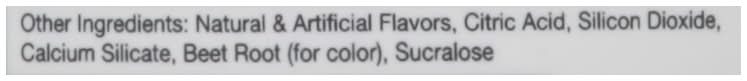 Ingredients: Deer Antler Velvet Extract. Other Ingredients: Natural & Artificial Flavors, Citric Acid, Silicon Dioxide, Calcium Silicate, Beet Root (for Color), Sucralose