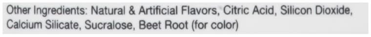 Ingredients: Other Ingredients: Natural & Artificial Flavors, Citric Acid, Silicon Dioxide, Calcium Silicate, Sucralose, Beet Root (for Color)
