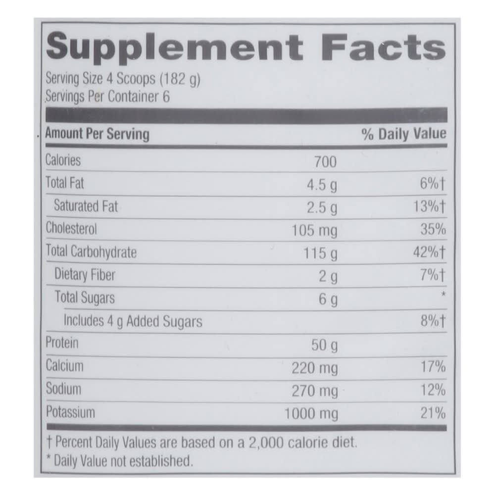 Directions for use: Ways to Enjoy Your Weight Gainer: 1. Shake: Combine with cold water, milk or your favorite beverage in a shaker cup. 2. Blend: Make a delicious smoothie adding fruits, juices, peanut butter or yogurt. Directions: As a dietary supplement mix four scoops (182 g) with 16 fl. oz. of water, milk or your favorite beverage and blend well. Consume 1-2 servings per day. Best enjoyed post-workout and/or throughout the day as an additional source of protein. Store in a cool, dry place. Storage recommendation: Store in a cool, dry place.