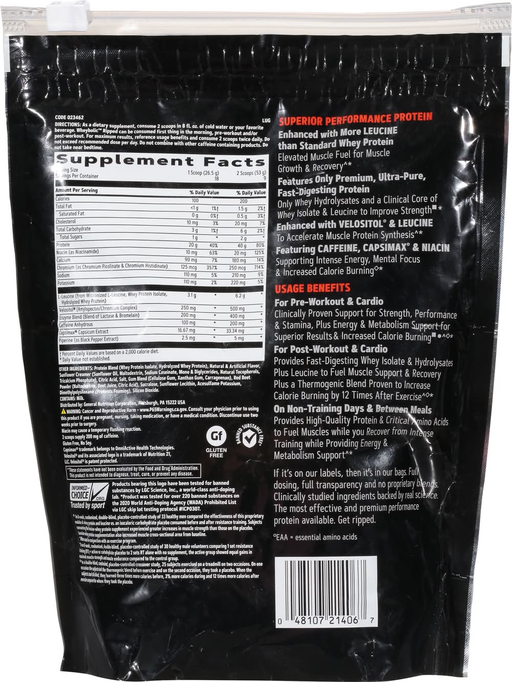 Usage of instructions:directions: as a dietary supplement, consume 2 scoops in 8 fl. oz. of cold water or your favorite beverage. wheybolic ripped can be consumed first thing in the morning, pre-workout and/or post-workout. for maximum results, reference usage benefits and consume 2 scoops twice daily. do not exceed recommended dose per day. do not combine with other caffeine containing products. do not take near bedtime. usage benefits: for pre-workout & cardio: clinically proven support for strength, performance & stamina, plus energy & metabolism support for superior results & increased calorie burning (an 8-week, randomized, double-blind, placebo-controlled study of 33 healthy men compared the effectiveness of this proprietary module of whey protein and leucine vs. an isocaloric carbohydrate placebo consumed before and after resistance training. subjects consuming the leucine-whey protein supplement experienced greater increases in muscle strength than those on the placebo. leucine-whey protein supplementation also increased muscle cross-sectional area from baseline) (in an 8-week, randomized, double-blind, placebo-controlled study of 30 healthy male volunteers comparing 1 set resistance training (rt) active or carbohydrate placebo to 2 sets rt alone with no supplement, the active group showed equal gains in maximal muscle strength and muscle endurance compared to the control group) (when used in conjunction with an exercise program) (in a double-blind, randomized, placebo-controlled crossover study, 25 subjects exercised on a treadmill on two occasions. on one occasion the subjects took the thermogenic blend before exercise and on the second occasion, they took a placebo. when the subjects took this blend, they lamed three times more calories before, 3% more calories during and 12 times more calories after exercise compared to when they took the placebo). for post-workout & cardio: provides fast-digesting whey isolate & hydrolysates plus leucine to fuel muscle support & recovery plus a thermogenic blend proven to increase calorie burning by 12 times after exercise (when used in conjunction with an exercise program) (in a double-blind, randomized, placebo-controlled crossover study, 25 subjects exercised on a treadmill on two occasions. on one occasion the subjects took the thermogenic blend before exercise and on the second occasion, they took a placebo. when the subjects took this blend, they lamed three times more calories before, 3% more calories during and 12 times more calories after exercise compared to when they took the placebo). on non-training days & between meals: provides high-quality protein & critical amino acids to fuel muscles while you recover from intense training while providing energy & metabolism support (when used in conjunction with an exercise program). - directions: as a dietary supplement, consume 2 scoops in 8 fl. oz. of cold water or your favorite beverage. wheybolic ripped can be consumed first thing in the morning, pre-workout and/or post-workout. for maximum results, reference usage benefits and consume 2 scoops twice daily. do not exceed recommended dose per day. do not combine with other caffeine containing products. do not take near bedtime. usage benefits: for pre-workout & cardio: clinically proven support for strength, performance & stamina, plus energy & metabolism support for superior results & increased calorie burning (an 8-week, randomized, double-blind, placebo-controlled study of 33 healthy men compared the effectiveness of this proprietary module of whey protein and leucine vs. an isocaloric carbohydrate placebo consumed before and after resistance training. subjects consuming the leucine-whey protein supplement experienced greater increases in muscle strength than those on the placebo. leucine-whey protein supplementation also increased muscle cross-sectional area from baseline) (in an 8-week, randomized, double-blind, placebo-controlled study of 30 healthy male volunteers comparing 1 set resistance training (rt) active or carbohydrate placebo to 2 sets rt alone with no supplement, the active group showed equal gains in maximal muscle strength and muscle endurance compared to the control group) (when used in conjunction with an exercise program) (in a double-blind, randomized, placebo-controlled crossover study, 25 subjects exercised on a treadmill on two occasions. on one occasion the subjects took the thermogenic blend before exercise and on the second occasion, they took a placebo. when the subjects took this blend, they lamed three times more calories before, 3% more calories during and 12 times more calories after exercise compared to when they took the placebo). for post-workout & cardio: provides fast-digesting whey isolate & hydrolysates plus leucine to fuel muscle support & recovery plus a thermogenic blend proven to increase calorie burning by 12 times after exercise (when used in conjunction with an exercise program) (in a double-blind, randomized, placebo-controlled crossover study, 25 subjects exercised on a treadmill on two occasions. on one occasion the subjects took the thermogenic blend before exercise and on the second occasion, they took a placebo. when the subjects took this blend, they lamed three times more calories before, 3% more calories during and 12 times more calories after exercise compared to when they took the placebo). on non-training days & between meals: provides high-quality protein & critical amino acids to fuel muscles while you recover from intense training while providing energy & metabolism support (when used in conjunction with an exercise program).