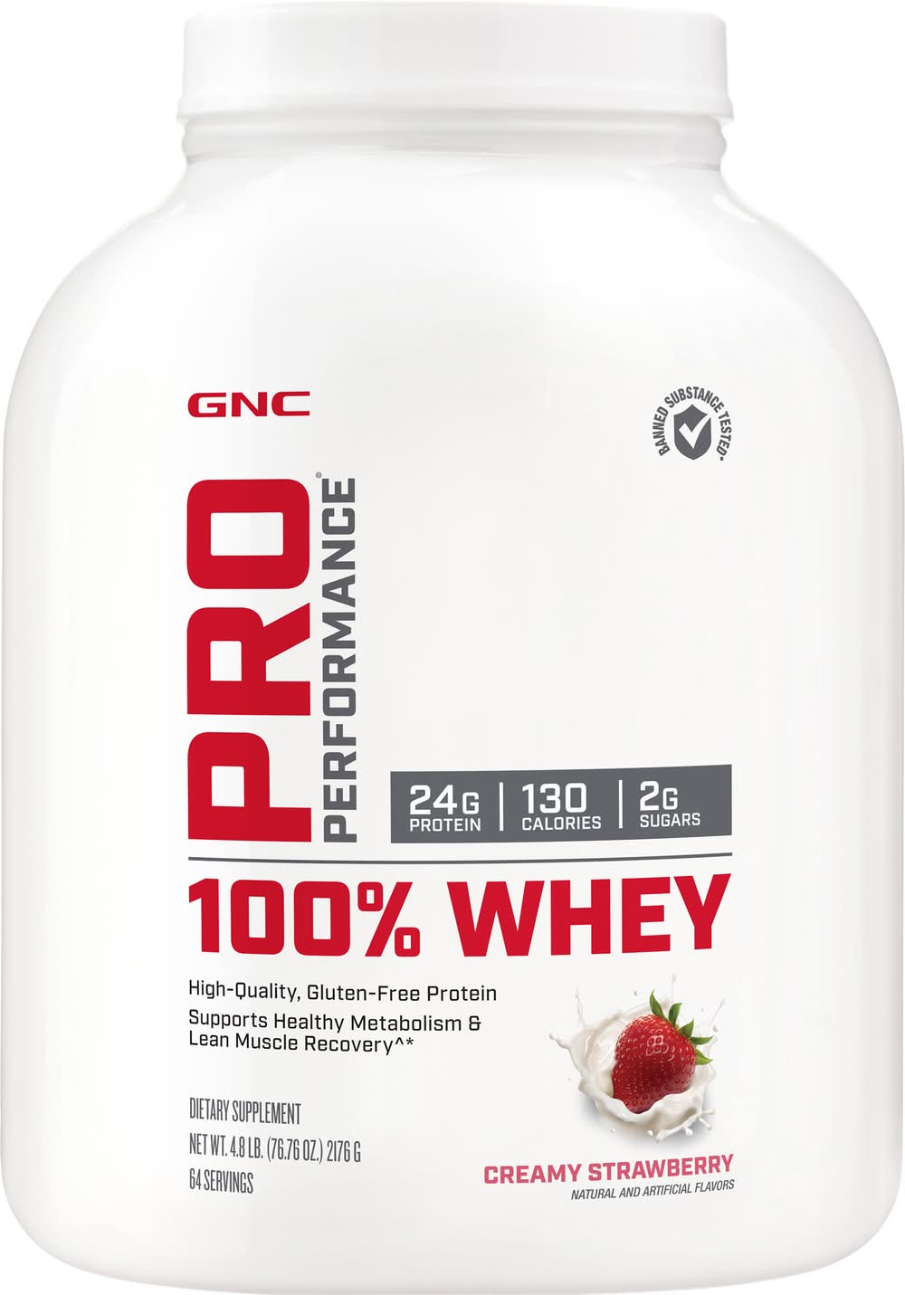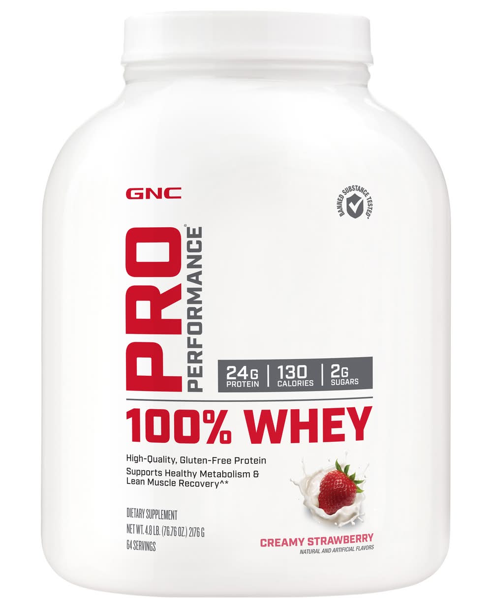 GNC Pro Performance 100% Whey Protein Powder, Creamy Strawberry (76.76 oz)