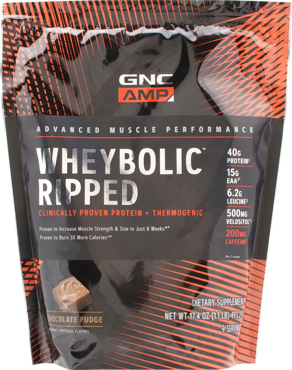 GNC Amp Wheybolic Ripped Whey Protein Dietary Supplement, Chocolate Fudge (17.4 oz)