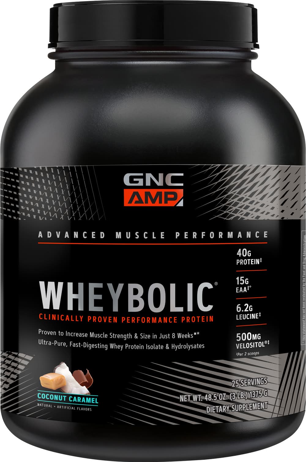 GNC Amp Wheybolic Muscle Performance Protein Powder, Coconut Caramel (48.5 oz)