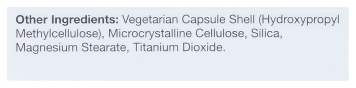 Ingredients: Lab4 Probiotics (50 Billion Active Cultures), Lactobacillus Acidophilus (Cul 60), Lactobacillus Acidophilus (Cul 21), Bifidobacterium Bifidum (Cul 20), Bifidobacterium Animals Subsp, Lactis (Cul 34). Other Ingredients: Vegetarian Capsule Shell (Hydroxypropyl Methylcellylose), Microcrystalline Cellulose, Silica, Magnesium Stearate, Titanium Dioxide