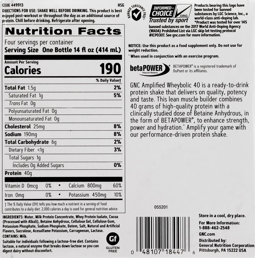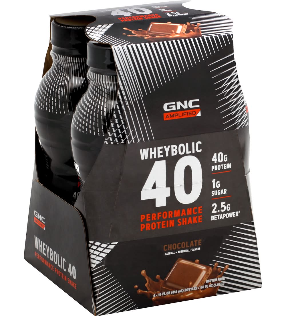 GNC Wheybolic 40 Performance Chocolate Flavored Protein Shake (4 x 14 fl oz)