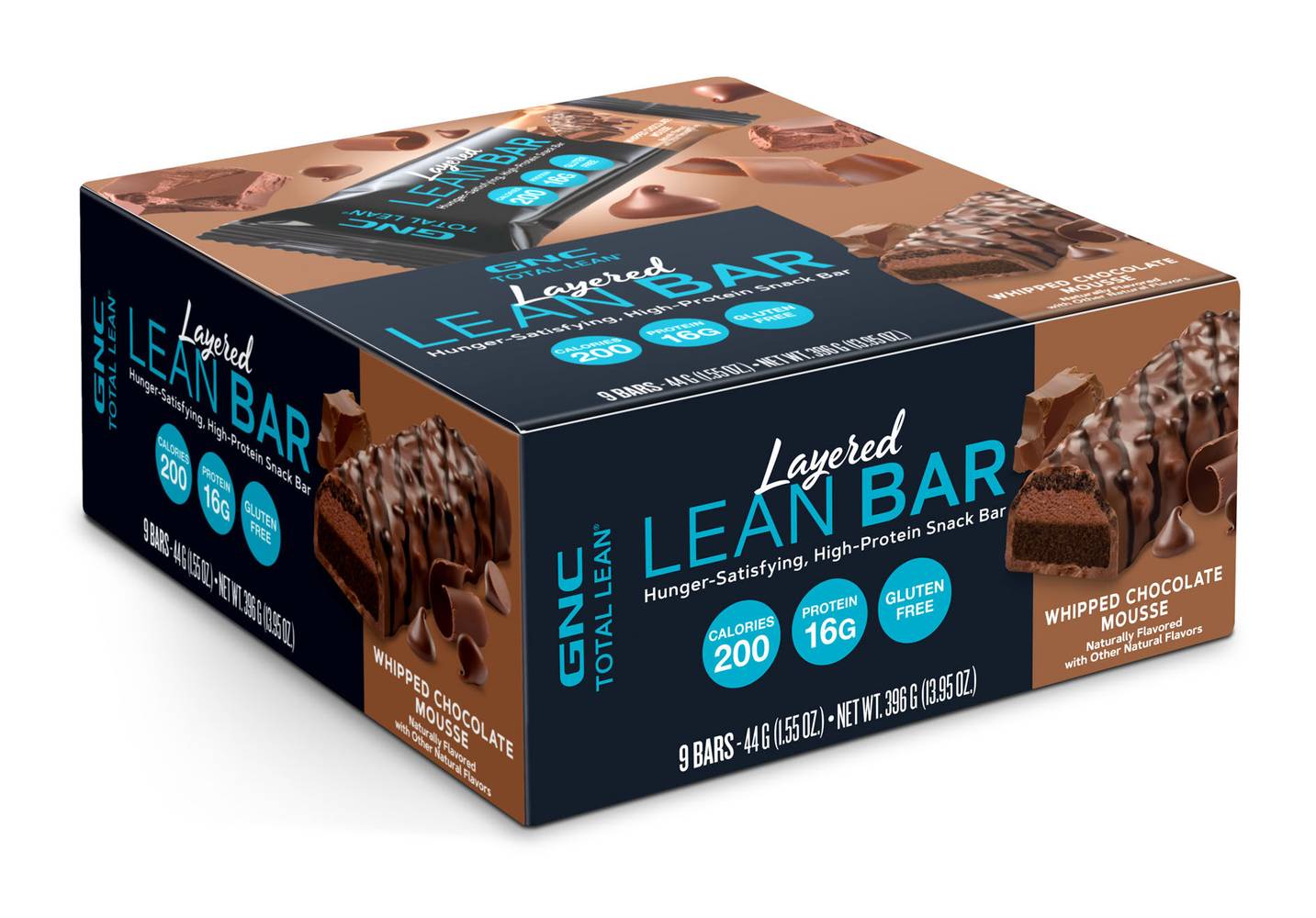Our Best-Tasting High-Protein Snack Bar Ever. GNC Total Lean® Layered Lean Bars satisfy between-meal hunger with 16g of high-quality protein—and indulge your sweet tooth with delicious flavors from classic desserts and your favorite Girl Scout Cookies™. It’s like a candy bar—with what you really want inside.   Reduce Feelings Of Hunger Between Meals With A Protein Bar. Goals feel a little further away when you’re hungry. Protein helps reduce the feeling of hunger—and with Layered Lean Bars you can bring a sweet, protein-packed treat anywhere.   Keep It Fun With Classic And Exclusive Flavors. Why stick with boring protein bar flavors? Layered Lean Bars are available in decadent peanut butter pie, whipped chocolate mousse, seasonal flavors, and a variety of Girl Scout Cookie™ inspired favorites—including Girl Scout Thin Mints®, Coconut Caramel, and more!   If You’re Going Gluten Free, These Are A Must-Have. Reducing or cutting out gluten might mean missing out on a lot of treats you used to enjoy. Layered Lean Bars have you covered  - most flavors are gluten-free and only 190 calories per bar!     • CONVENIENT AND DELICIOUS HIGH-PROTEIN SNACK BAR: Layered Lean Bars are a perfect way to bring decadent flavors and hunger-satisfying protein anywhere you need a snack.   • SATISFY HUNGER BETWEEN MEALS: Layered Lean Bars make it easy to give your diet a boost with 16g of high-quality protein in a sweet treat with only 190 calories.   • WIDE SELECTION OF PROTEIN BAR FLAVORS: If you’re craving a candy bar—or even something more indulgent—Layered Lean Bars are available in classic, seasonal, and Girl Scout Cookie™ flavors.   • GLUTEN-FREE PROTEIN SNACK: Most flavors of Layered Lean Bars are gluten free, so they’re an ideal fit for a variety of nutritional needs.     • Contains 9 bars • 16g protein • 190 calories • Gluten free • Flavor: Whipped chocolate mousse • Size: 1