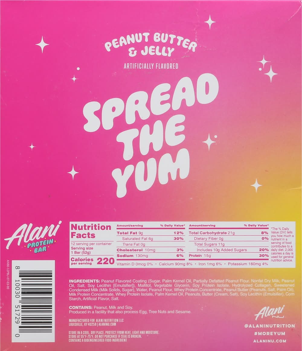 Alani Nu Protein Bar, Peanut Butter-Jelly (21.96 oz, 12 ct)