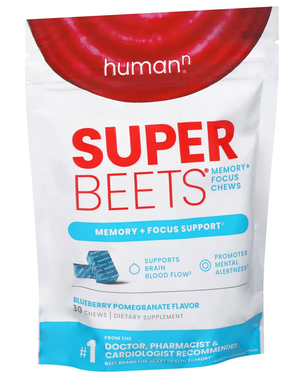 HumanN Superbeets Memory & Focus Chews, Blueberry-Pomegranate (30 ct)