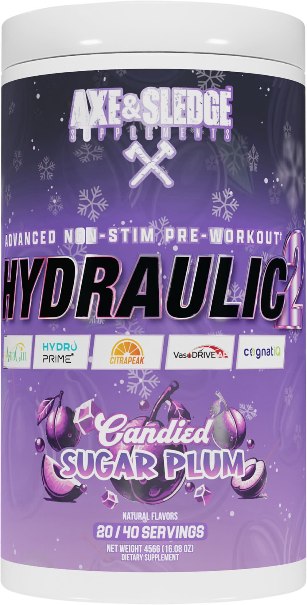 Axe & Sledge Supplements Hydraulic 2 Advanced Non-Stim Pre-Workout, Candied Sugar Plum (16.08 oz)