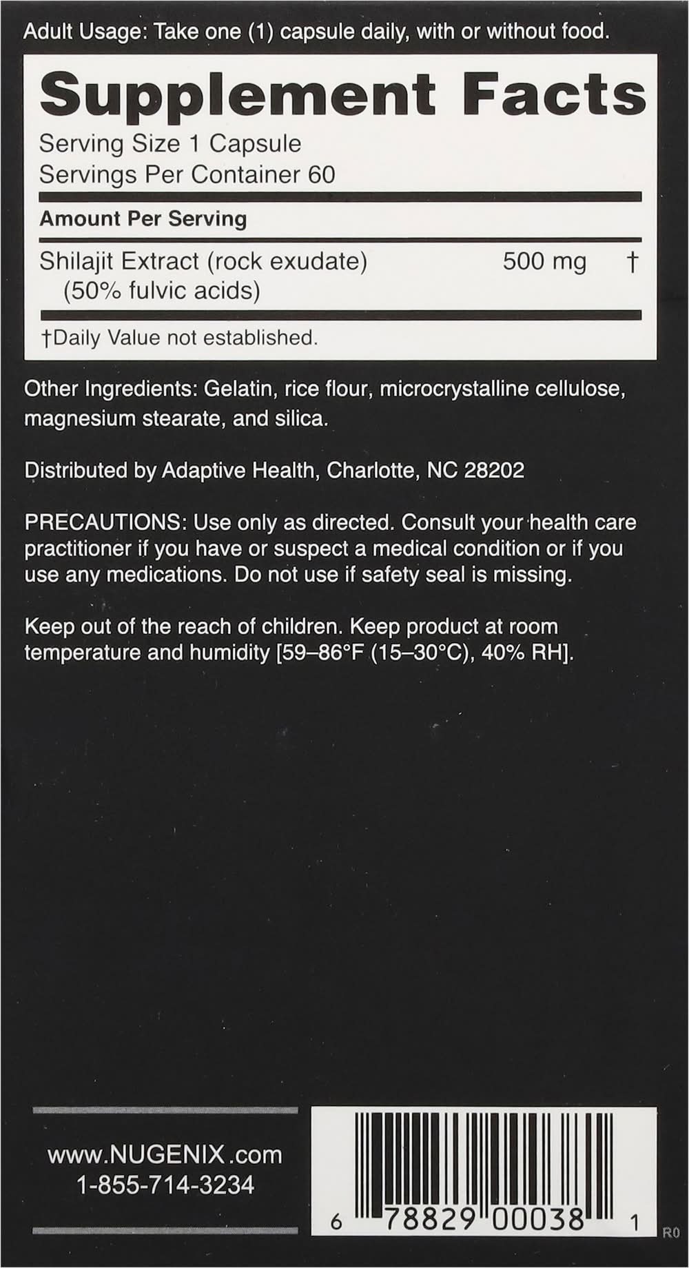 Directions for use: Adult Usage: Take one (1) capsule daily, with or without food. Storage recommendation: Keep product at room temperature and humidity [59-86 degrees F (15-30 degrees C), 40% RH].