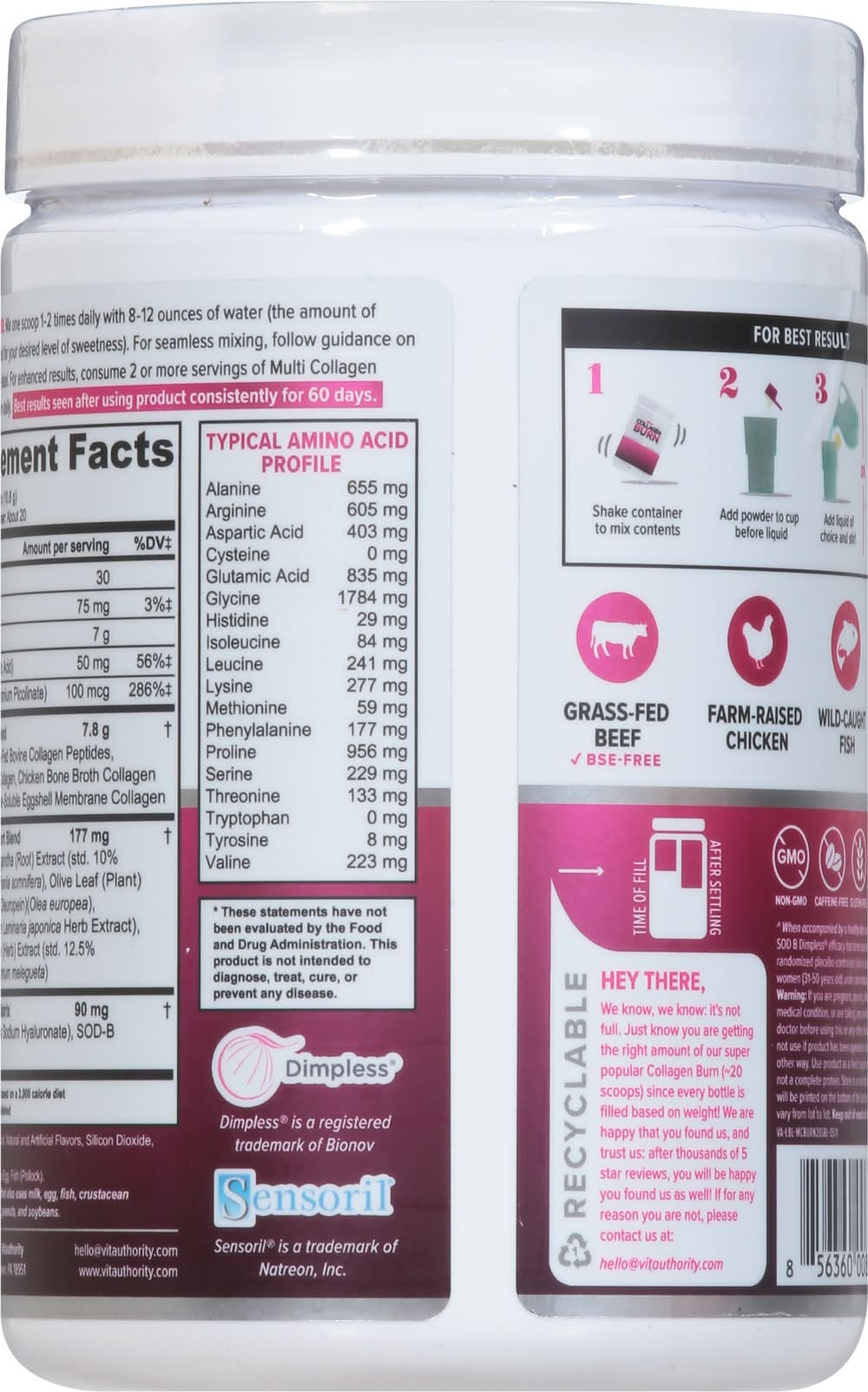 Vitauthority Strawberry Lemonade Multi Collagen Burn (7.62 oz)
