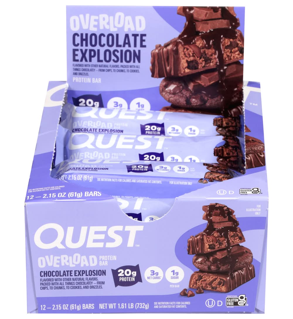 Quest Overload Protein Bar, Chocolate Explosion (12 x 2.15 oz)