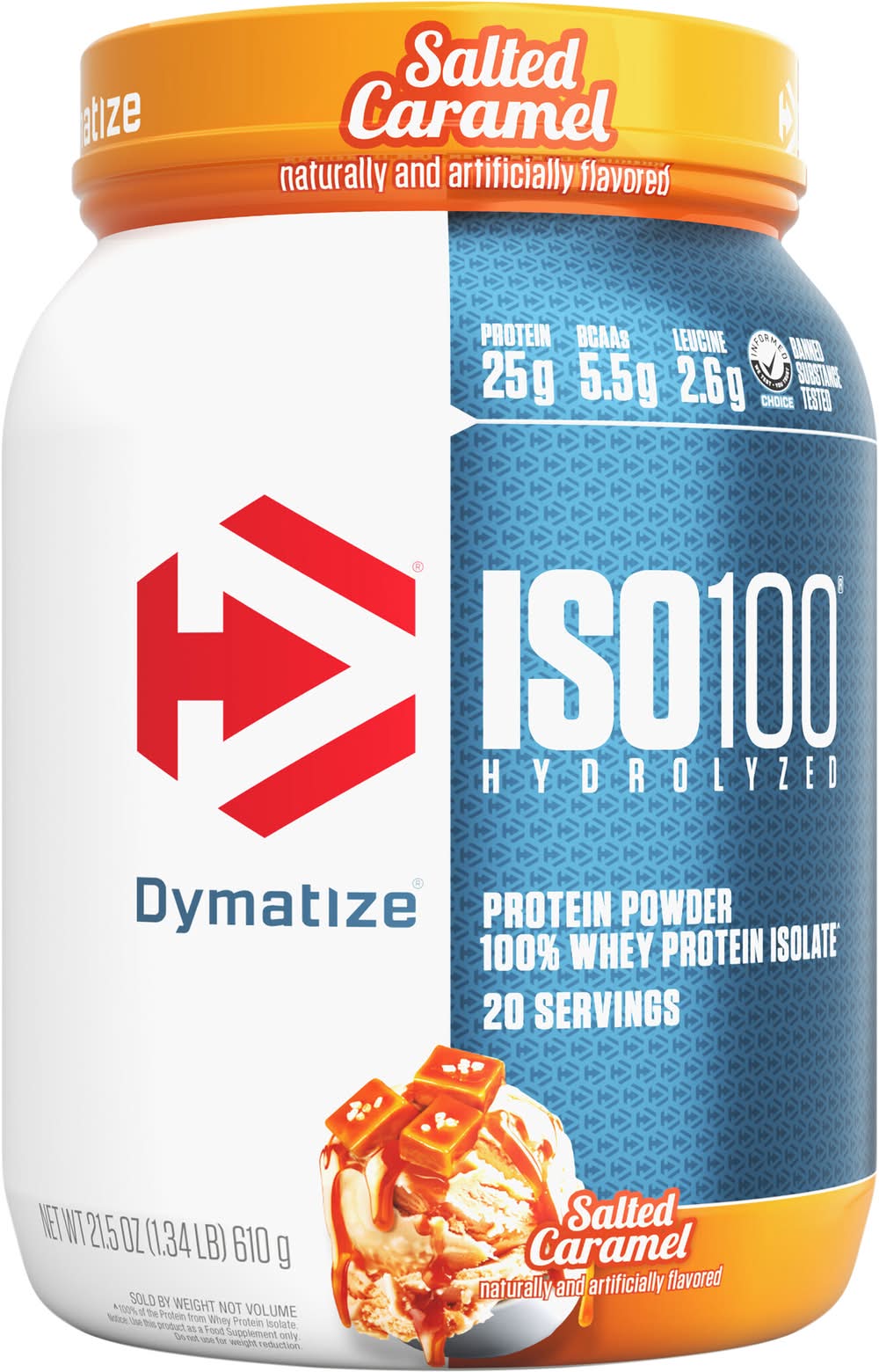 Dymatize Iso100 Hydrolyzed Whey Protein Powder, Salted Caramel (21.5 oz)