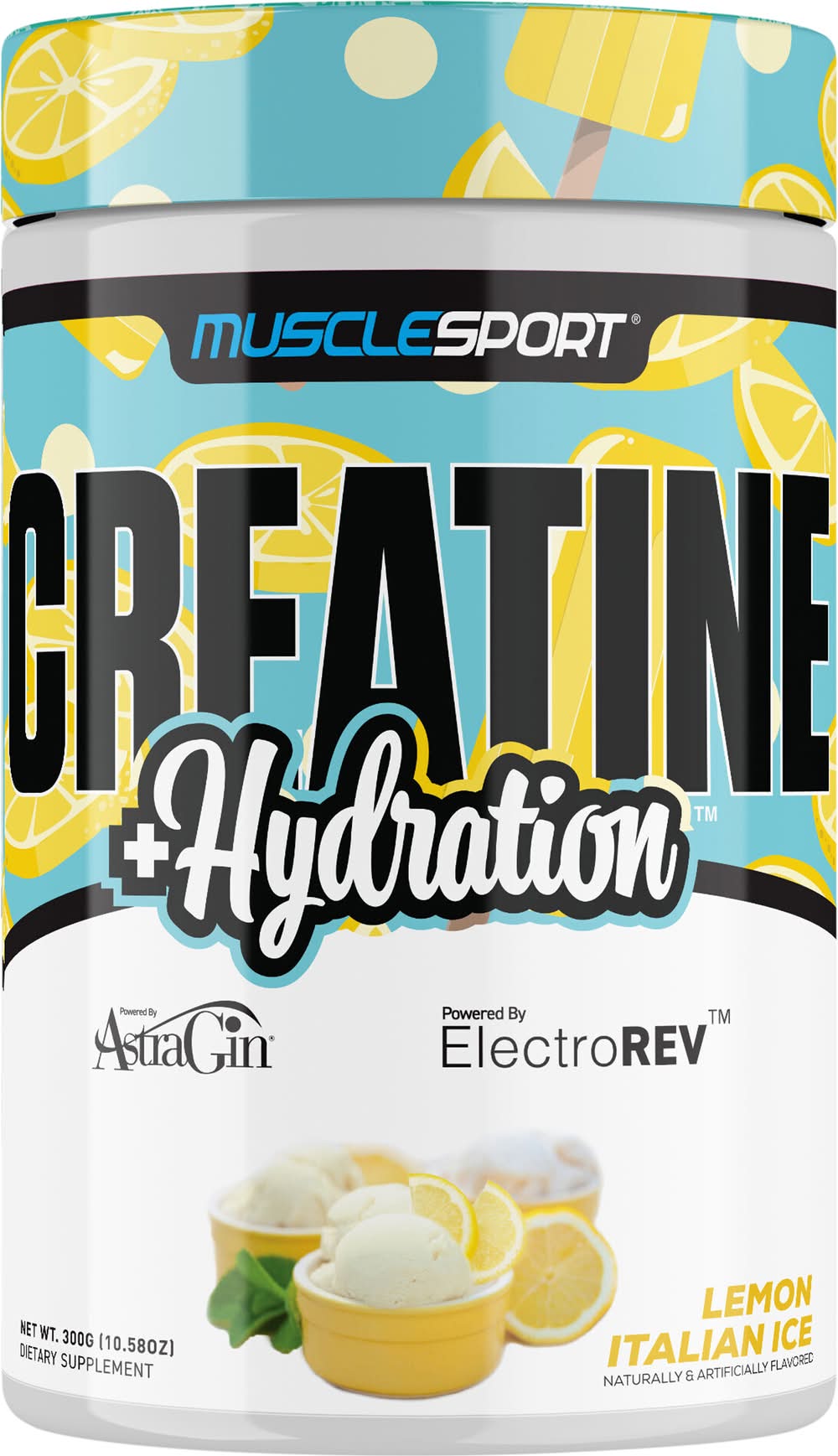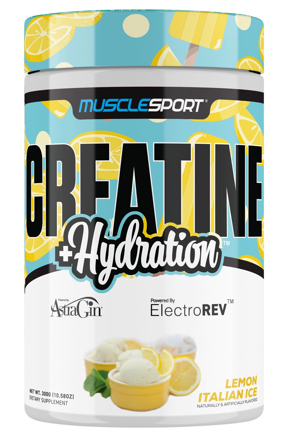 Musclesport +Hydration Lemon Italian Ice Creatine, Lemon Italian Ice (10.58 oz)