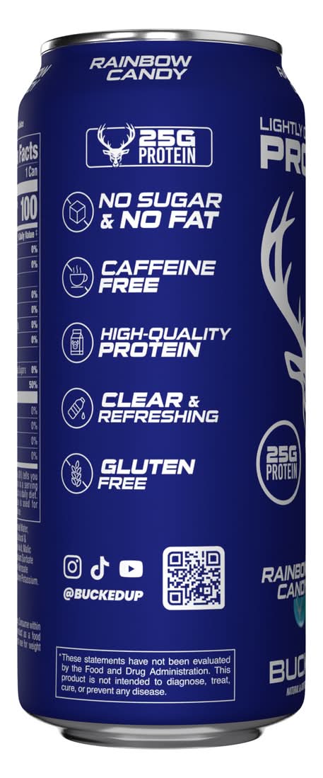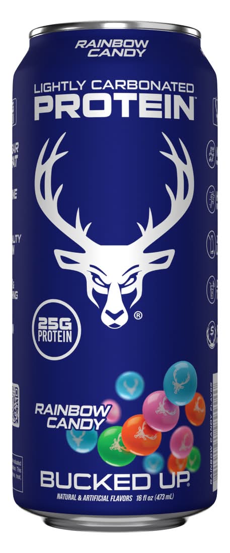 Bucked Up Lightly Carbonated Protein Drinks, Rainbow Candy (12 x 16 fl oz)