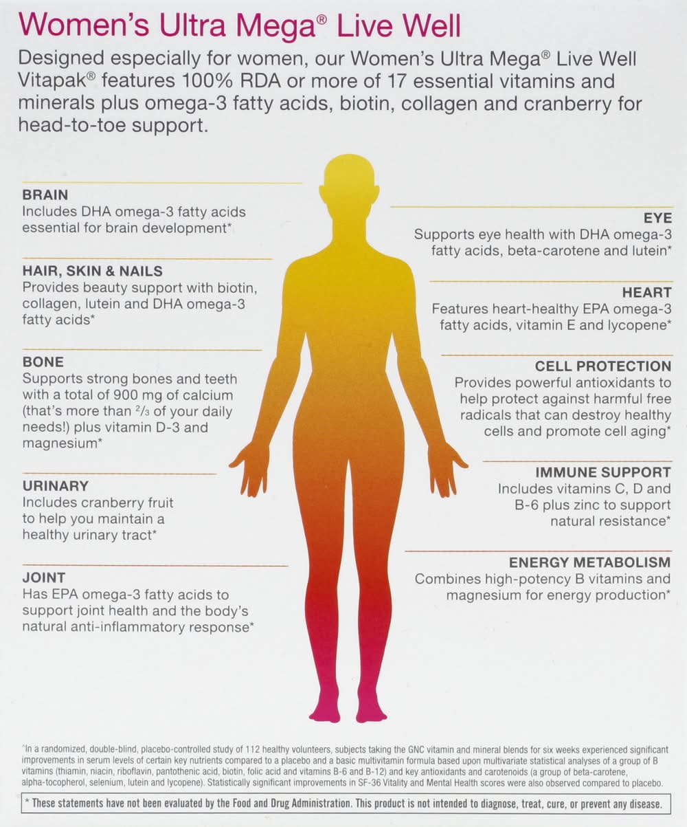 GNC Women's Ultra Mega Live Well Vitapak Program Supplement (6.4 oz)