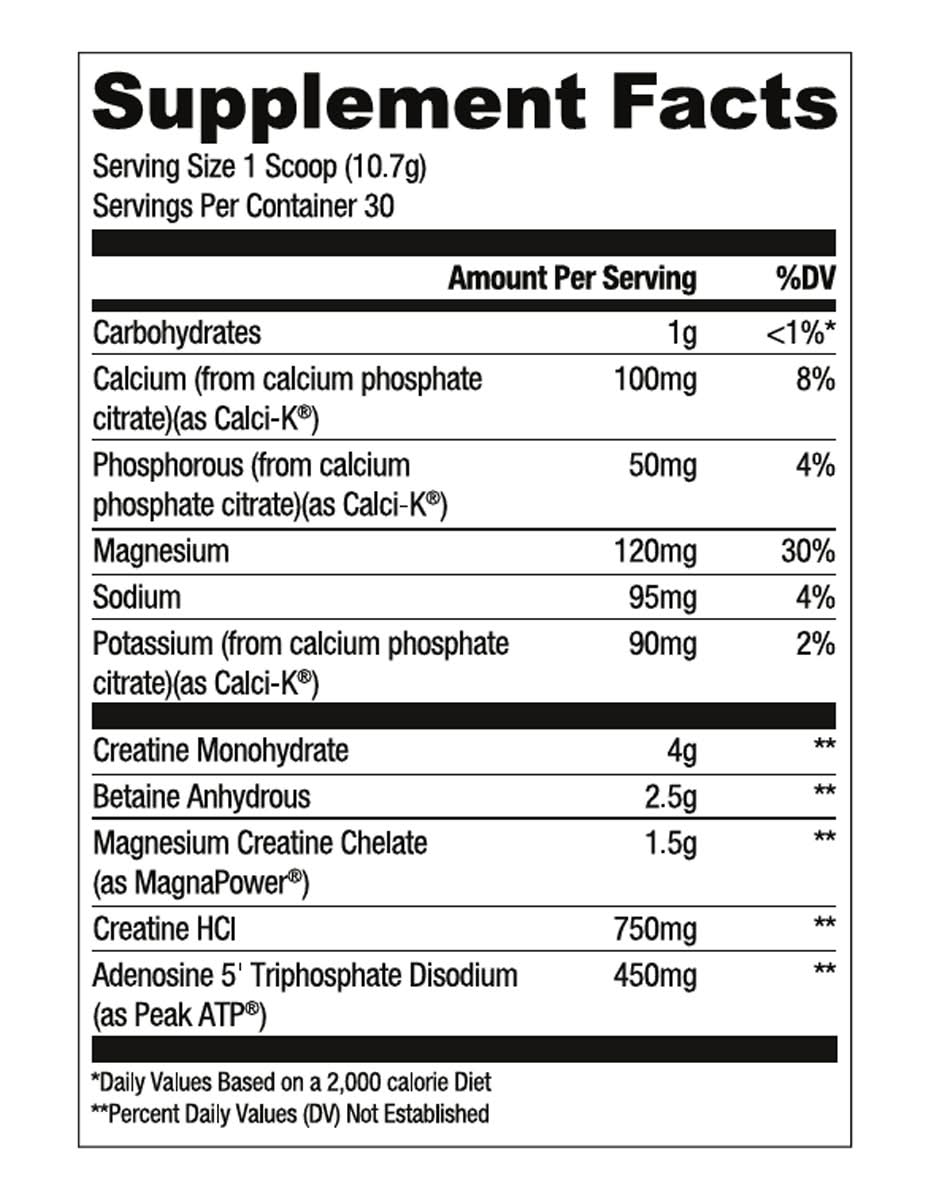 Muscle Building Formula Per Scoop: 450 Peak ATP 1.5G Magnapower 2.5G Betaine Size: 1