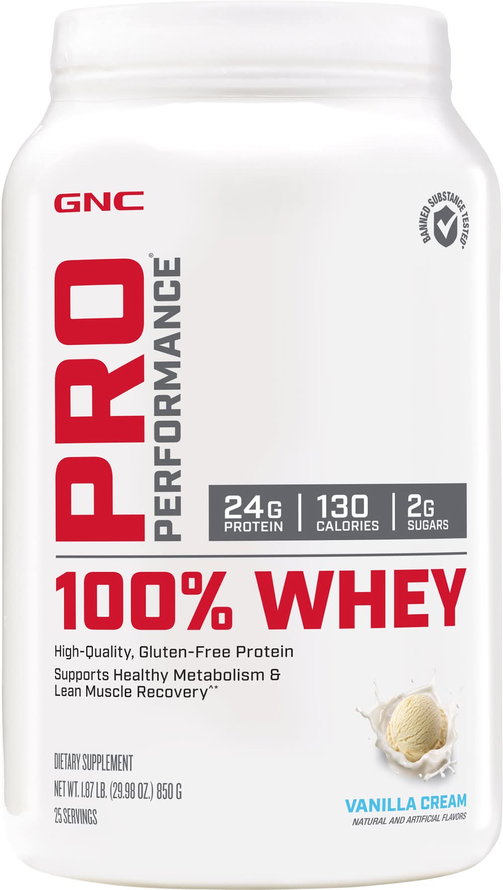 GNC Performance 100% Whey Protein Powder, Vanilla Cream (29.9 oz)