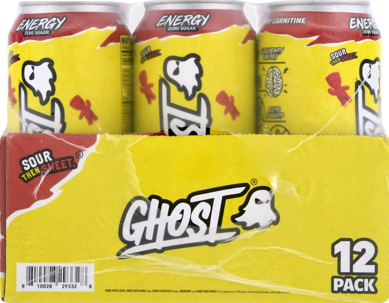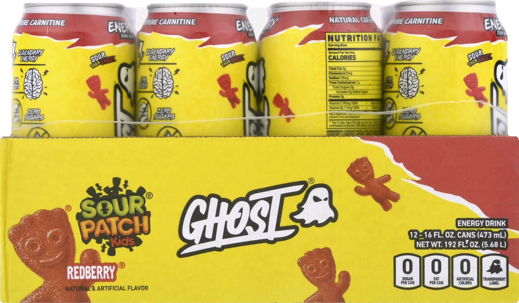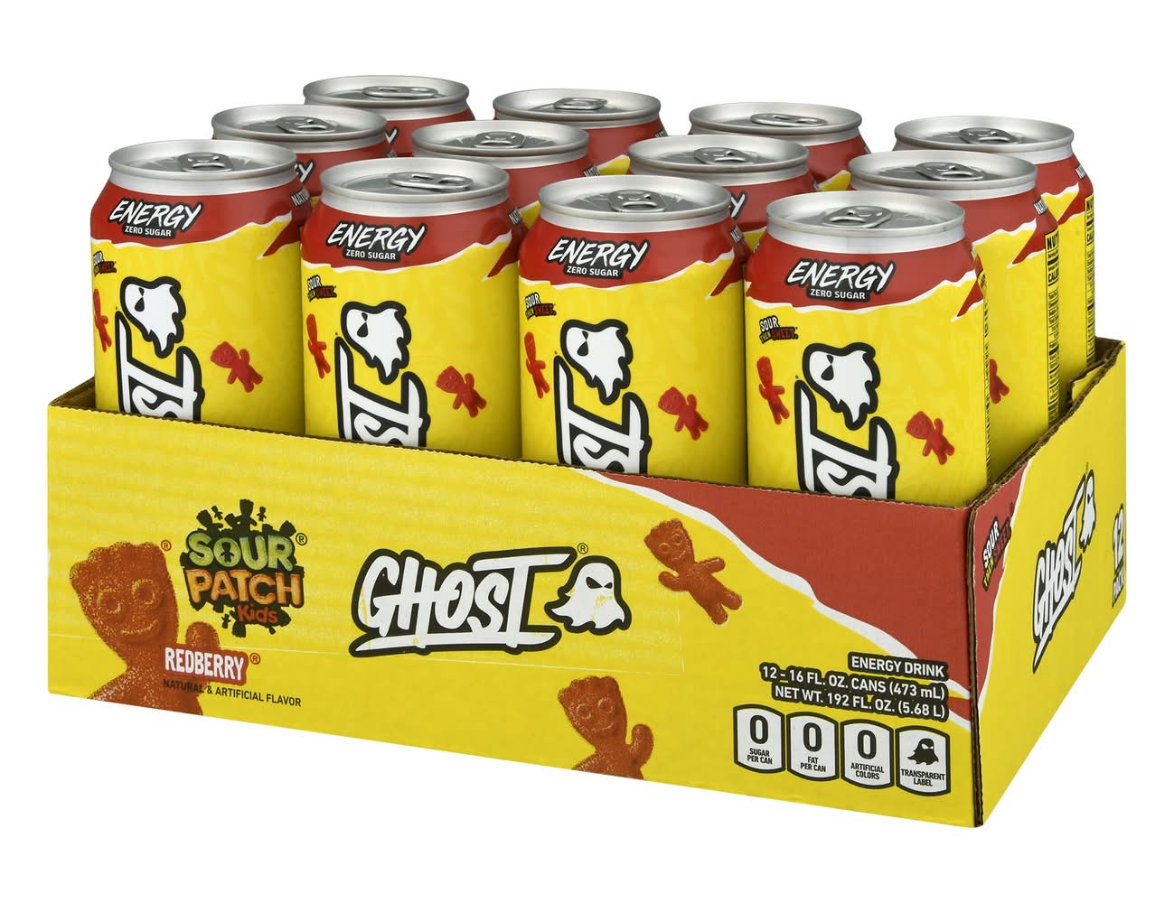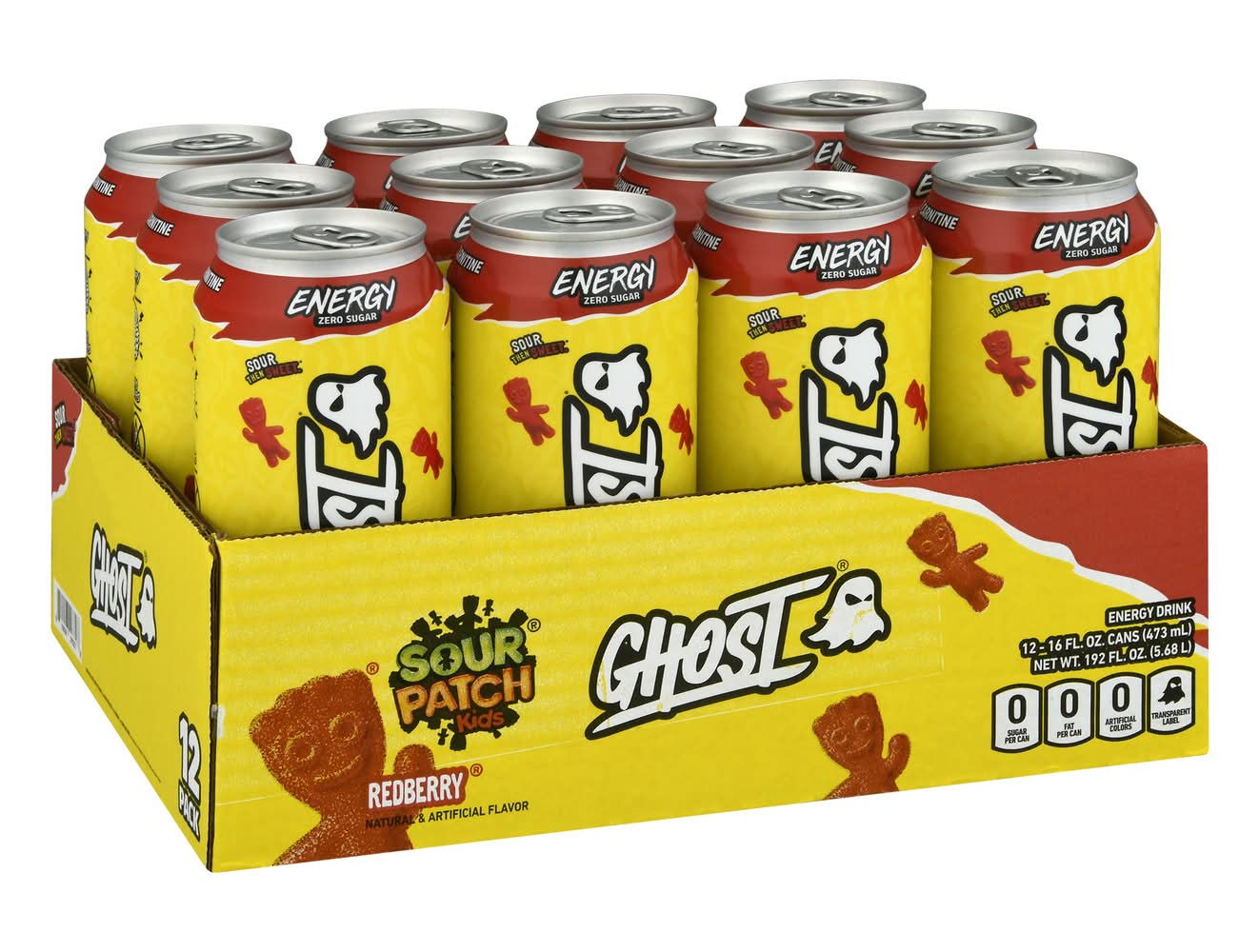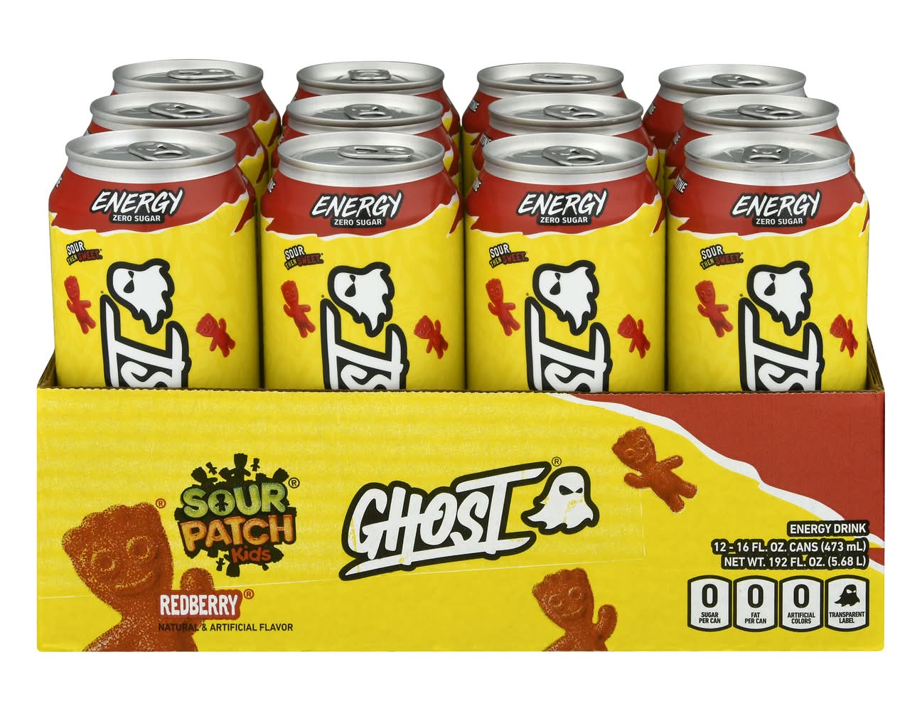 Ghost Sour Patch Kids Zero Sugar Energy Drink, Redberry (12 x 16 fl oz)