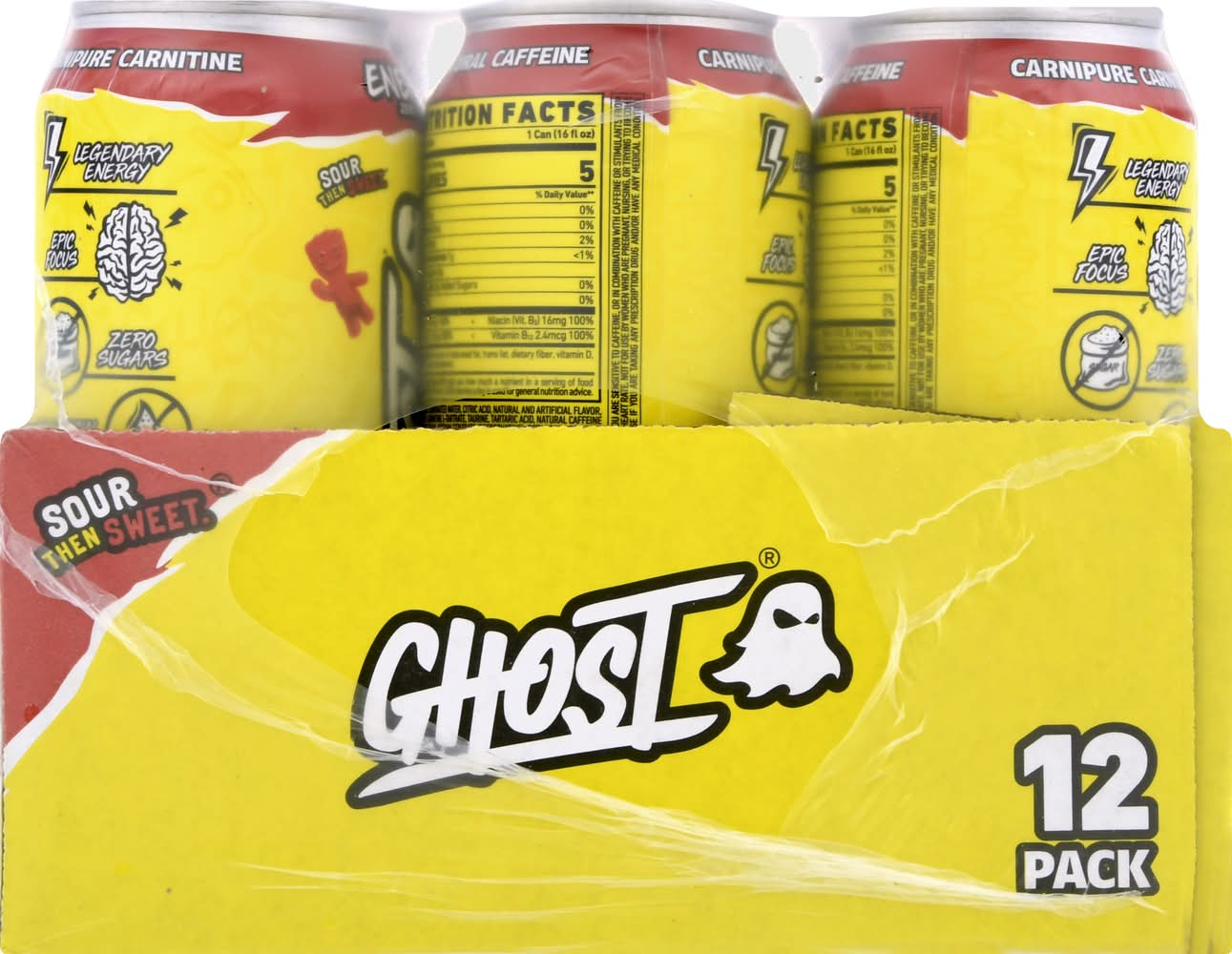 Energy Drink, Sour Patch Kids Redberry, 12 Pack • Flavor: Redberry • Pack size: 12 • Size: 1 • Ghost LLC, Las Vegas, NV , 89118 GHOST-88 • Packaging: Reusable