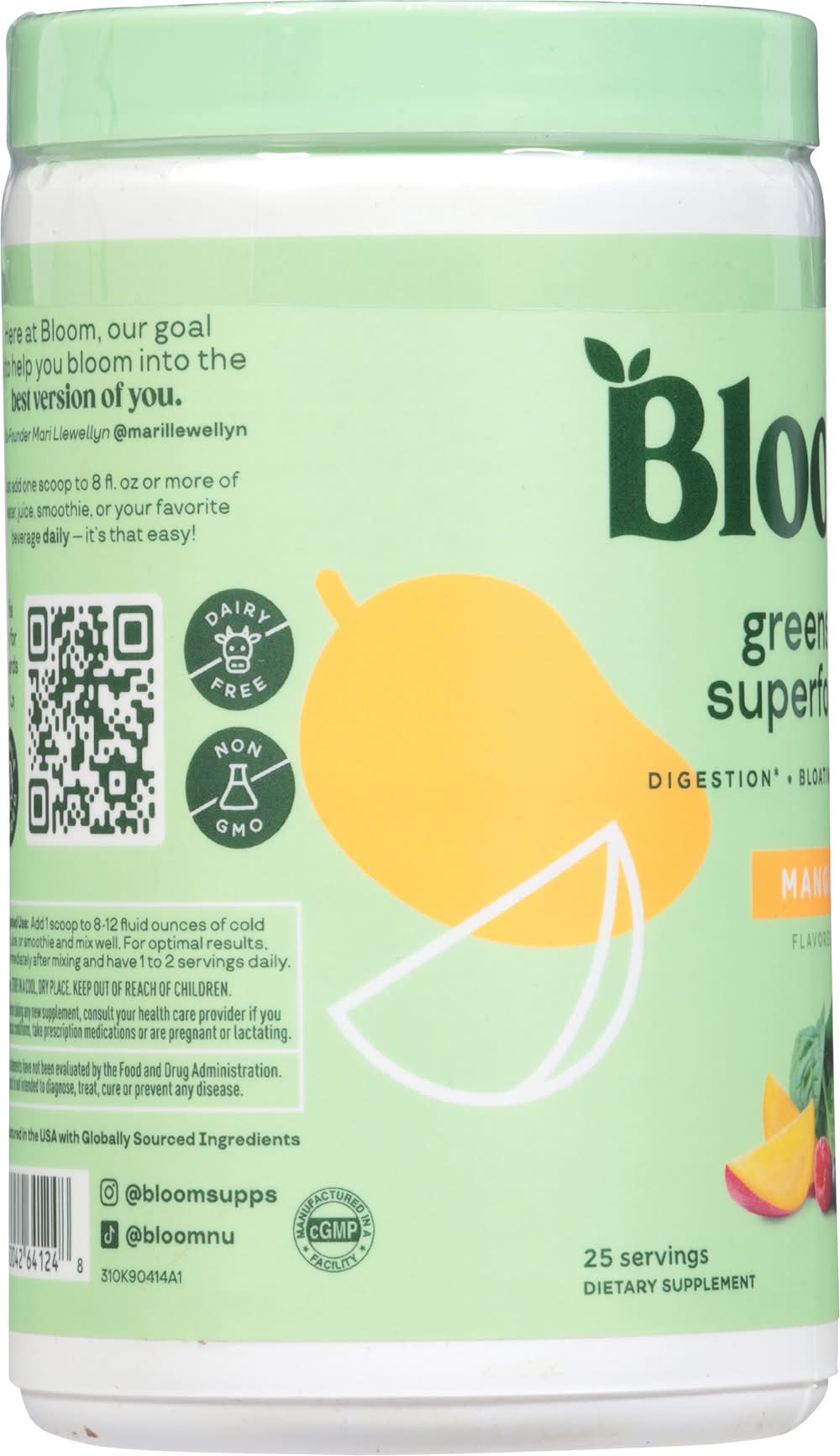 Bloom - Greens & Superfoods - Mango - 25 Servings • Digestion* | Bloating* | Energy* • Dairy Free • Gluten Free • Female Founded • cGMP Certified Size: 1