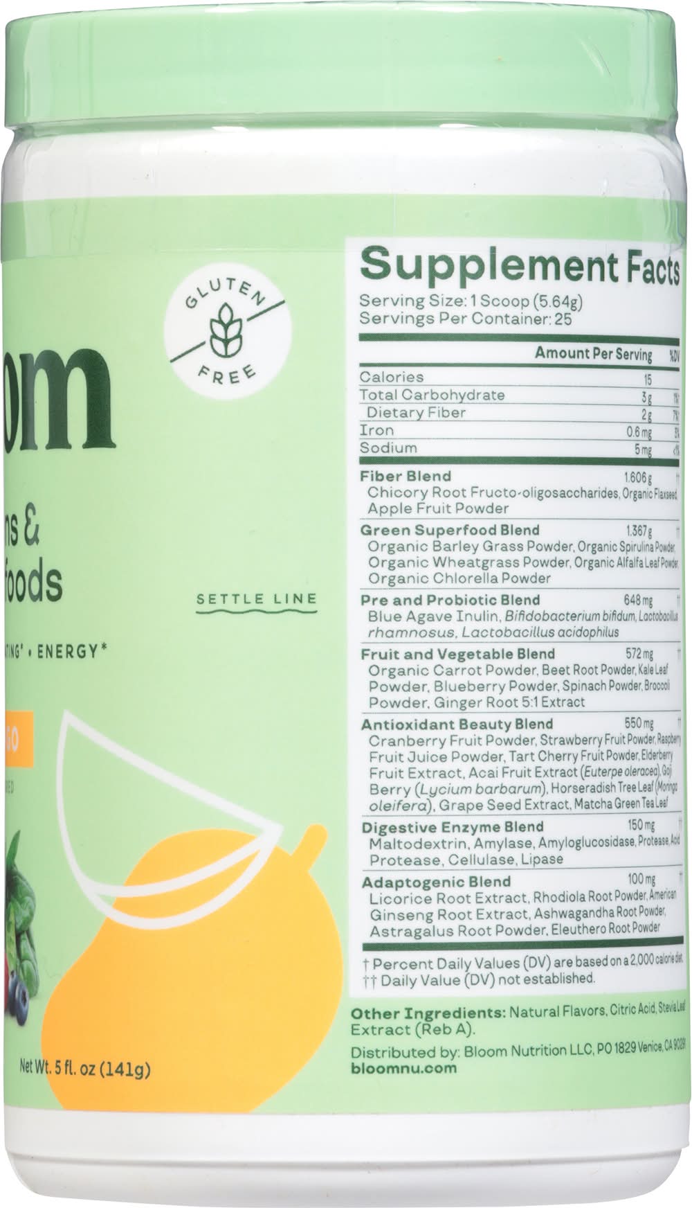 Bloom Nutrition Greens and Superfoods Dietary Supplement Powder, Mango (5 fl oz)