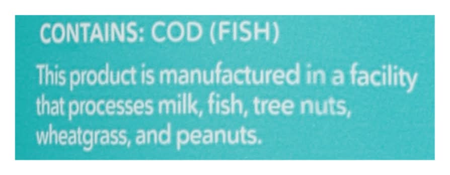 Contains: Fish, Cod, Milk, Fish, Tree Nuts, Wheat, Peanuts