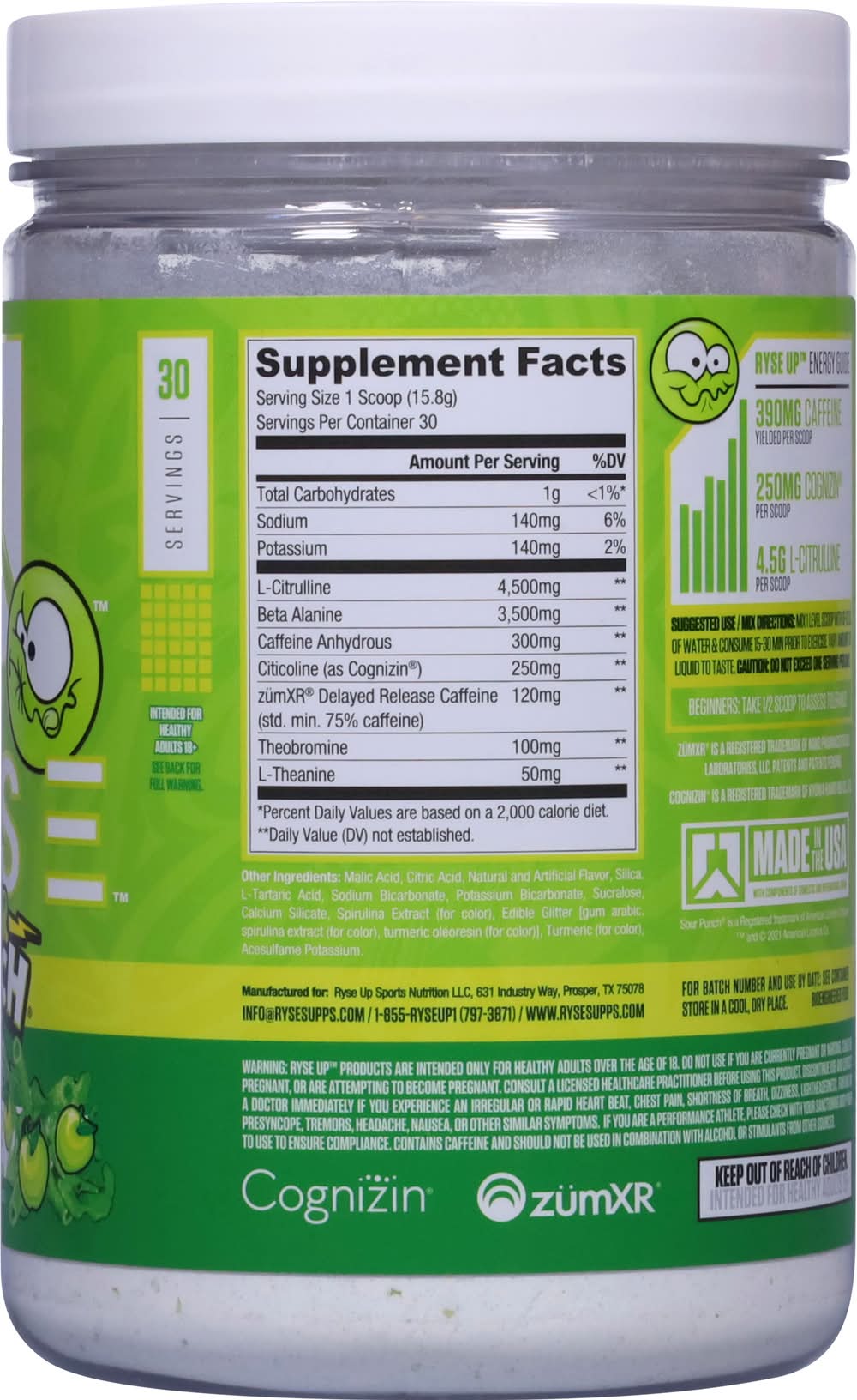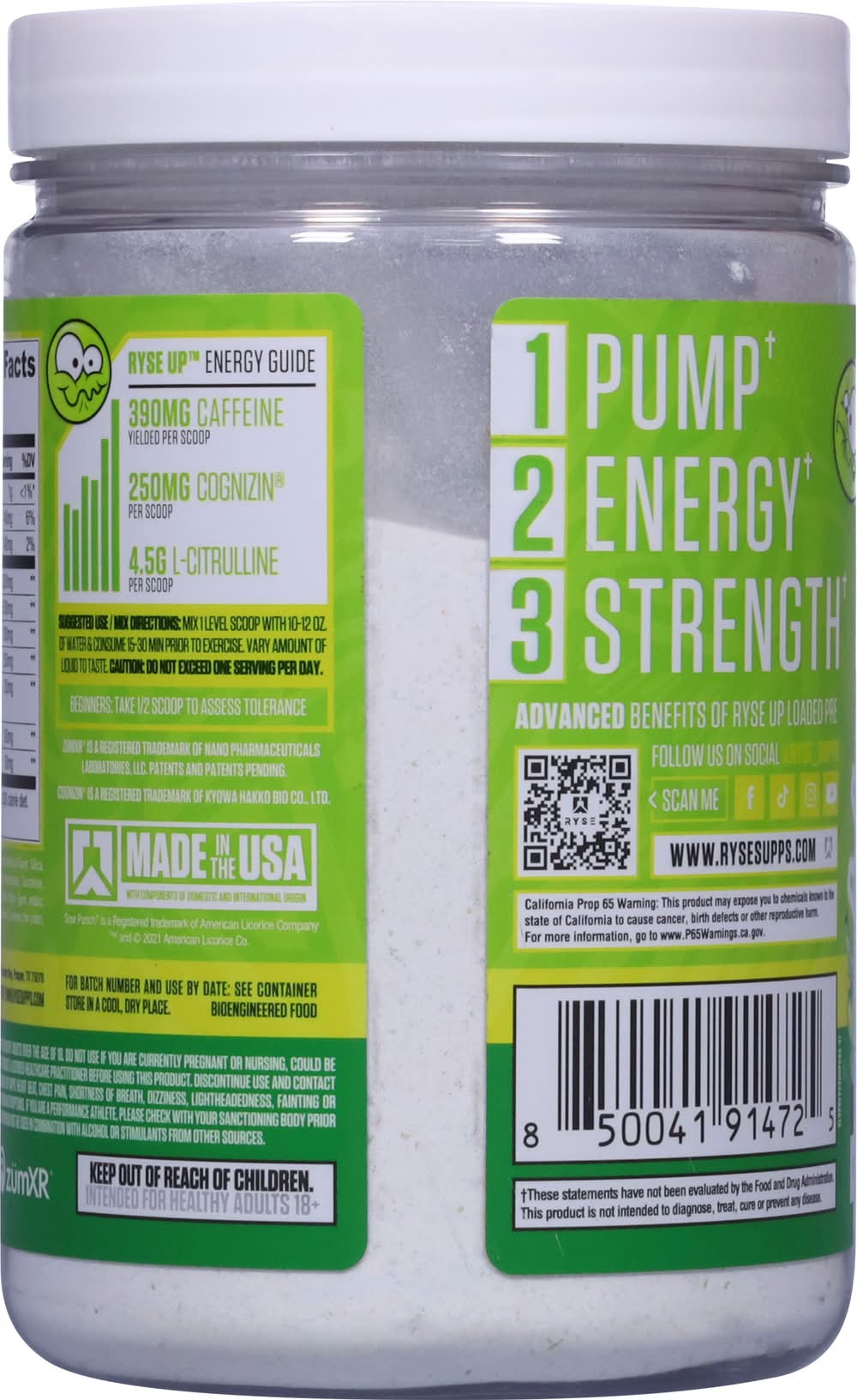 Ryse Loaded Pre Dietary Supplement, Sour Punch Green Apple (16.7 oz)