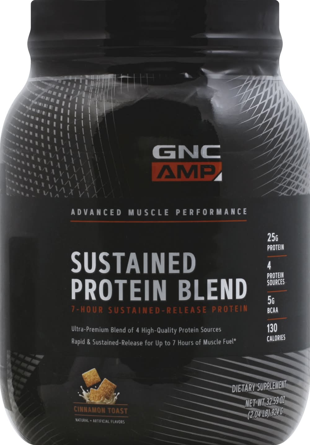 GNC Sustained Protein Blend 25g Protein 5g Bcaa Cinnamon Toast (2.04 lbs)