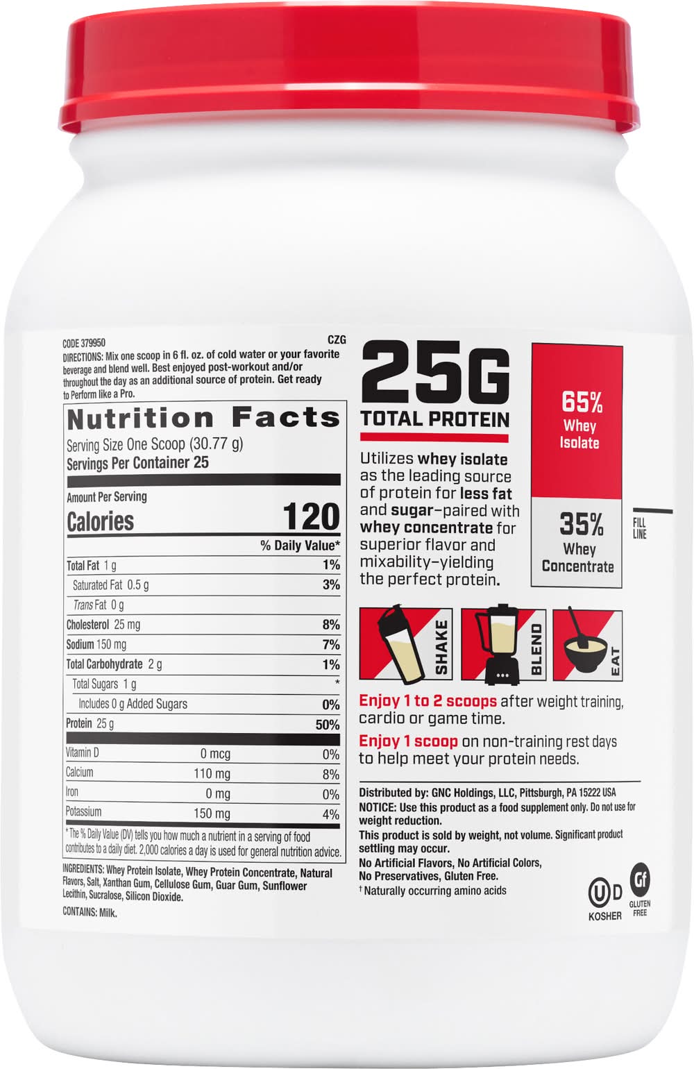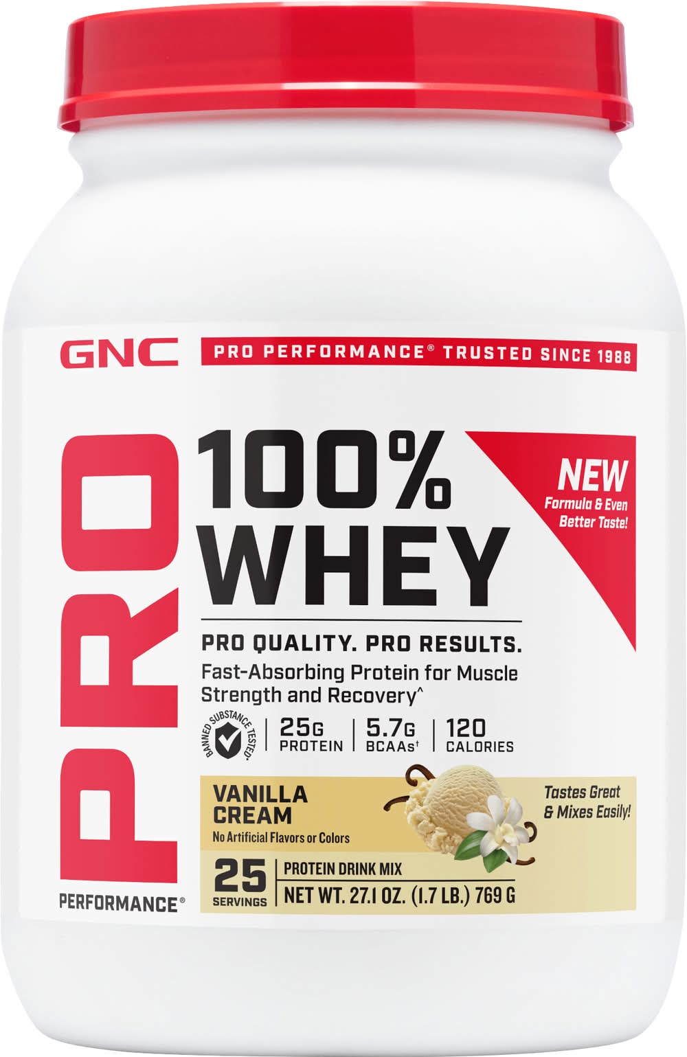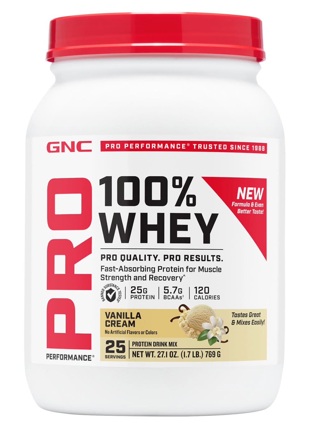 GNC Pro Performance 100% Whey Protein Drink Mix, Vanilla Cream (27.1 oz)